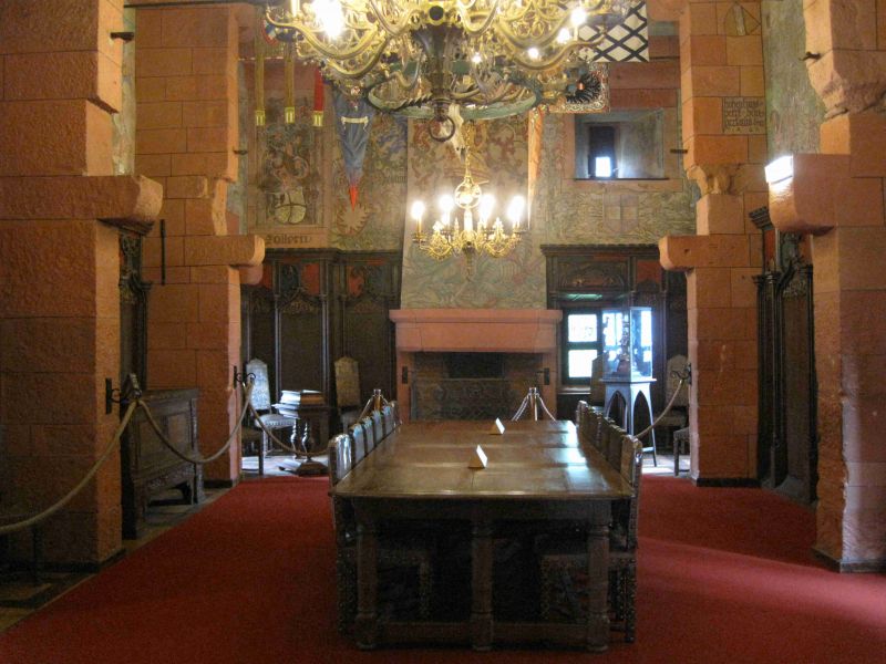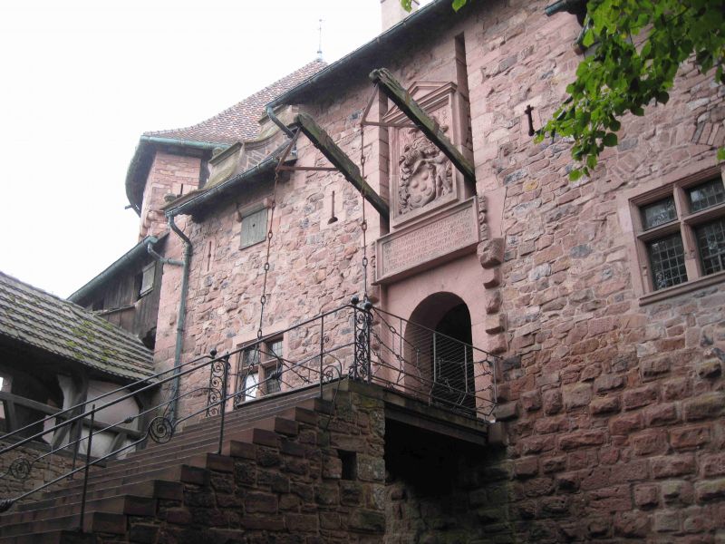 kilometer voor het kasteel en lopen het laatste stukje over een bospad er naar toe. Het kasteel Haut-Koenigsbourg is rond 1147 gebouwd en gaf de controle over belangrijke handelswegen en over de rijnvallei. Het is in de geschiedenis verschillende keren in andere handen overgegaan maar tijdens de dertigjarige oorlog in 1633 door de Zweden verwoest. Het bleef daarna als een ruïne achter en kwam na de nederlaag van de Fransen in 1871 in Duitse handen. De stad Sélestat schonk het aan de Duitse keizer. Die zag de burcht als een symbool van het Duitse verleden van de Elzas en liet de burcht geheel restaureren op basis van hetgeen bekend was uit het verleden. Het was een mega-klus die men met de toenmalig modernste methoden in 6 jaar heeft geklaard. Tegenwoordig is het voor publiek toegankelijk en je krijgt echt een goede indruk hoe het leven indertijd moet zijn geweest.