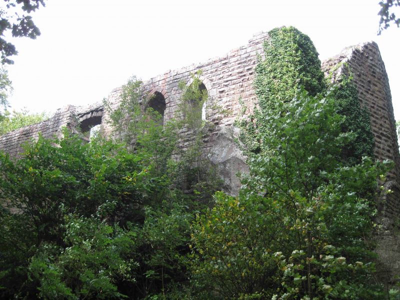 Vanmorgen gaan we na het ontbijt naar het VVV om te kijken of er een fietstocht in de omgeving kan worden gemaakt. Men heeft een fietstocht die van Metzeral naar Colmar gaat, maar alleen een klein deel daarvan gaat heen en terug niet langs de zelfde route. We kiezen in eerste instantie het stuk tussen Munster en Wihr-au-Val dat wel een rondje is en volgens de mevrouw van het VVV ongeveer twee uur duurt. Omdat we gewend zijn halverwege de middag warm te eten gaan alle daarvoor benodigde ingrediënten in de fietstassen. We eten kerry-rijst. Vanmorgen was het lekker zacht weer maar op het moment dat we wegrijden is het bewolkt en wat fris. We rijden langs de rivier de Fechte hetgeen betekent dat we wel hier en daar een klimmetje tegenkomen maar nergens hoeven af te stappen. Het parcours bestaat uit een smalle asfalt weg waar geen auto’s rijden, ideaal dus om rustig het landschap te bekijken. Na een half uurtje, dus veel sneller dan voorspeld, zijn we al vlakbij Wihr-au-Val dus bijna op de helft. We besluiten daarom door te rijden richting Colmar. Een stukje verder zijn we een ruïne op een heuveltop opdoemen.