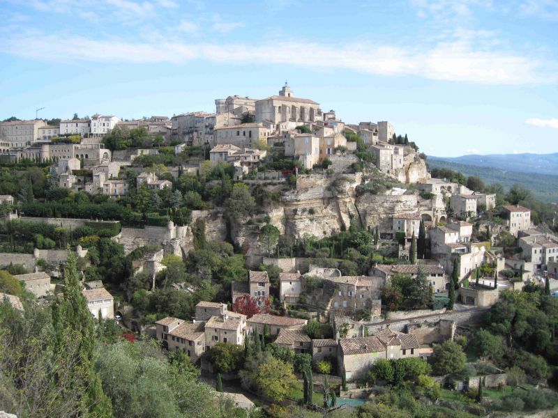 Vanmorgen is het weer al weer dik in orde. We maken ons gereed voor vertrek en rond twaalf uur verlaten we de camping. Eerst richting het centrum van de stad om boodschappen te doen. Nadat dat achter de rug is vertrekken we naar Gordes dat op ongeveer 35 km rijden vanaf Chateauxrenard ligt. Volgens ons camperboek zijn er twee camperplaatsen, één op anderhalve kilometer vóór het dorpje en één in het centrum. We hebben de camperplaats in het centrum op het oog maar als we daar aankomen blijkt deze met een slagboom afgesloten en tevens verboden voor campers. Later zal blijken dat men de verkeerde coördinaten in het boek heeft opgenomen en dat de echte plaats elders ligt. We rijden terug naar de plek nog vóór het dorpje en parkeren de