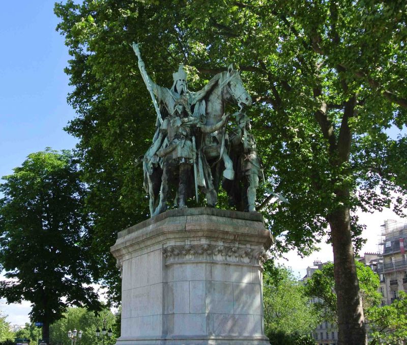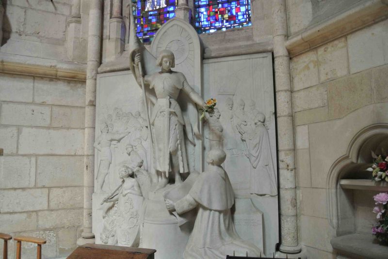 Na het kerkbezoek beginnen we aan de rondwandeling die ons door straatjes met vakwerkhuizen voert. We komen via de Rue Jeanne d’Arc weer terug bij onze fietsen. We scoren nog een patatje en rijden via het centrale plein, waar we door Jeanne worden uitgezwaaid die daar als een levensgroot standbeeld zittend te paard is vereeuwigd, de stad uit. Zoals wellicht bekend heeft Jeanne d’Arc in 1429 als 17 jarige het leger aangevoerd dat Orléans na vijf maanden van Engelse belegering heeft ontzet. Na een mislukte poging om die klus in Parijs te herhalen is ze in ongenade gevallen en twee jaar later na een schijnproces door de Engelsen in Rouen als ketter op de brandstapel gezet.