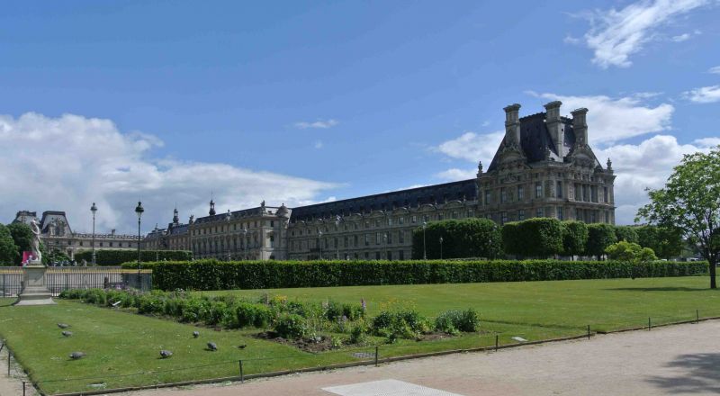 Het weer valt zeker niet tegen als je bedenkt dat we vlak voor vertrek nog een stortbui met volop hagelstenen op het camperdak hoorden vallen. Nadat we weer op de begane grond zijn beland lopen we de Champs Elyssee af waarna we via de Place de la Concorde en de Tuileries bij het Louvre komen. Het is opvallend hoeveel toeristen er in het voorjaar al op de been zijn en ook hoeveel bewapende bewaking bij verschillende overheidsgebouwen aanwezig is.
