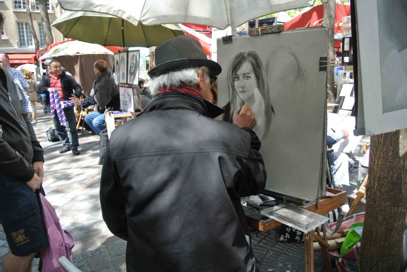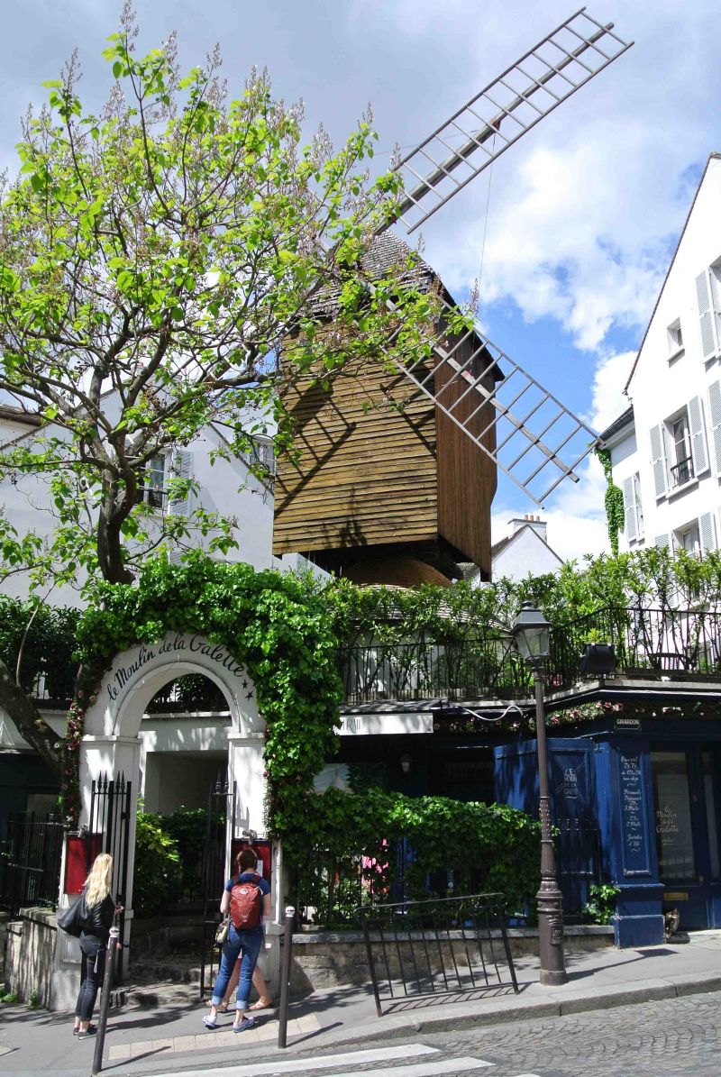 Na het verlaten van de kerk lopen we naar het Place du Tertre dat tegenwoordig vooral het domein is van portret- en landschapsschilders en natuurlijk de toeristen die er komen. Voor twintig euro kun je een goed lijkend portret laten tekenen waarop je er net ietsje mooier opkomt dan je zou verwachten. Na een rondje over het plein dat een gezellige sfeer ademt vervolgen we de wandelroute die ons langs de wijngaard van Montmartre en de twee windmolens voert. Deze molens zijn het onderwerp geweest van veel schilders, waaronder Van Gogh en Renoir.
