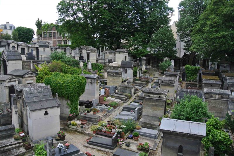 Uiteindelijk komen we uit bij het kerkhof van Montmartre. Dit is op dat van Père Lachaise na het bekendste van Parijs met onder meer de graven van Dalida, Ampère, Sax en Offenbach. Een rondje over dit grote kerkhof, waar men dwars over het kerkhof een viaduct heeft gebouwd, levert Aukje de nodige foto’s op voor haar rubriek in Aukjes Corner. Het kerkhof maakt overigens een slecht onderhouden indruk. Zodra we weer bij de uitgang aankomen lopen we verder naar het metrostation van Blanche waarna we in een uurtje terug zijn op de camping. Tijd voor een biertje, de warme hap, koesteren in de avondzon en wat internetten.