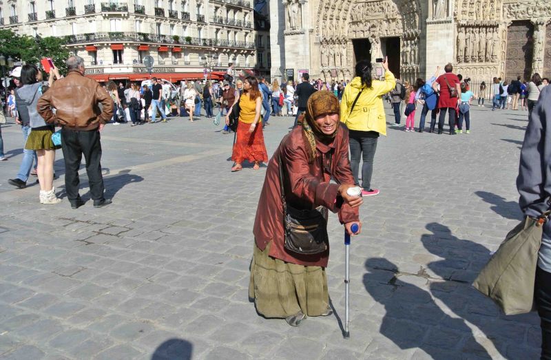 Bij het Louvre gaan we verder langs de Seine en over de Pont Neuf naar de Kathedraal Notre Dame. Op het plein voor de kerk is het aardig druk maar de lange rij voor de ingang doet ons besluiten om vandaag niet te proberen te binnenkant van de kerk te bekijken. In plaats daarvan lopen we door naar de zuidoever en verder door de wijk Saint Germain des Prés richting Hotel des Invalides.