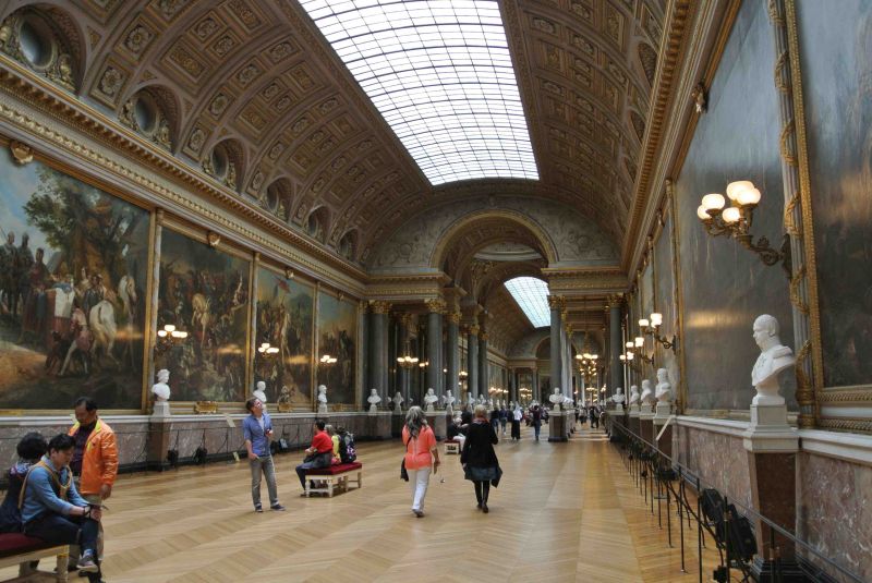 Vanuit de spiegelzaal kom je in de verblijven van de koning waar onder meer zijn slaapkamer met hemelbed kan worden bekeken. Daarna komen we in ‘La Galerie des Batailles’. Deze is zeker zo groot als de spiegelzaal, maar in plaats van spiegels heeft men hier de wanden gevuld met enorme schilderijen van het formaat Nachtwacht. De hele geschiedenis van Frankrijk komt aan de beurt, van Koning Clovis via Karel de Grote en Jeanne d’Arc tot aan Napoleon, waarbij men het verloop van de veldslagen gedetailleerd in beeld brengt. Alleen een schilderij van de Slag bij Waterloo mist nog, maar daar zal wel geen plaats meer voor zijn geweest (omdat deze was verloren).