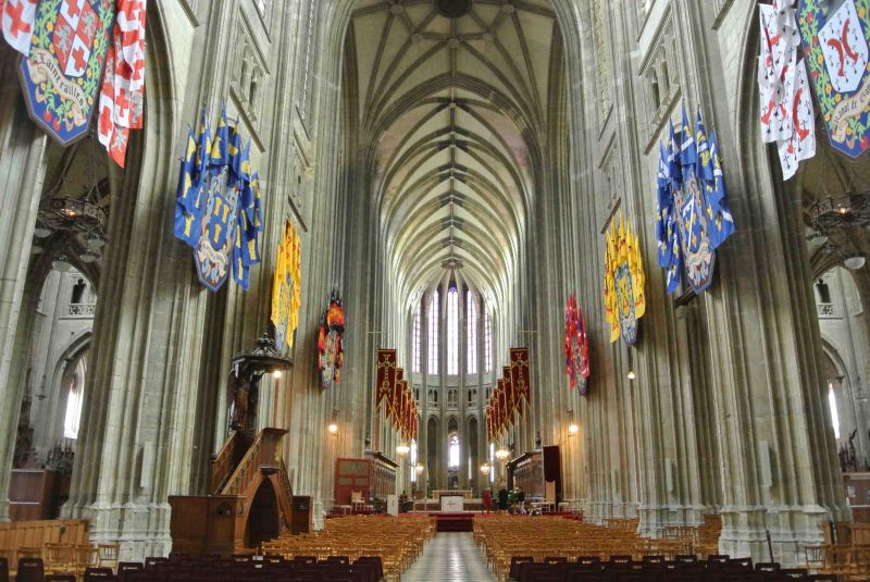 Rond half twaalf rijden we naar Bauvais op ongeveer dertien kilometer afstand. Enerzijds om bij de Lidl aldaar voor een week boodschappen in te slaan maar ook om het centrum van de stad met zijn mooie kathedraal te bekijken. Nadat de boodschappen aan boord zijn en de koffie achter de kiezen gaan we een paar kilometer verder naar de camperplaats nabij het centrum. In het centrum blijkt het centrale plein momenteel op de schop maar verderop komen we bij de prachtige kathedraal die uit de dertiende eeuw stamt. Van buiten is het en robuust en imposant met overdadige versieringen. Binnen is het sober en valt vooral de enorme hoogte van het middenschip en het prachtig uitgevoerde grote uurwerk op. Weer buitengekomen bekijken we nog het voormalige bisschoppelijke paleis naast de kathedraal dat van een afstand met zijn torens meer op een kasteeltje lijkt. We lopen door het centrum terug richting de camper.