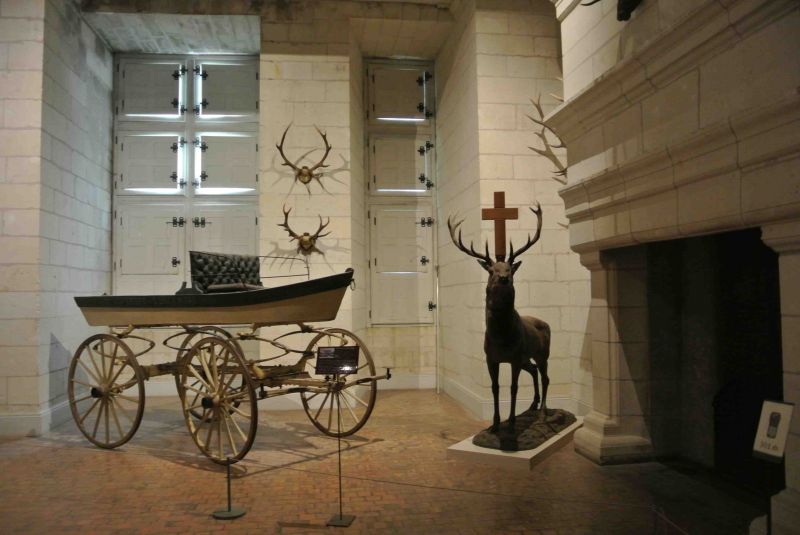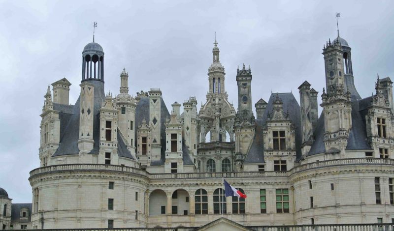 We besluiten het kasteel te gaan bekijken waarbij we eerst in een naastgelegen kerkje terecht komen waar juist een baby is gedoopt. Het kasteel ziet er van buiten precies uit zoals een kasteel in een sprookje, veel mooier en sierlijker dan bv. het kasteel van Versailles. Er is een veelheid van torens en versieringen en het geheel is erg groot maar ook in balans met elkaar. Binnengekomen kom je op een open ruimte waarin de donjon (verstrekte burcht) de centrale plaats inneemt. Midden in de donjon neemt de dubbele wenteltrap een centrale plaats in. Het zijn twee trappen die als wokkels in elkaar zijn gewikkeld, waarbij als je een trap omhoog neemt de mensen op de andere trap wel kunt zien maar nooit tegenkomt. Aan de binnenzijde is het enorme kasteel sober uitgevoerd. Er is een flink aantal kamers gevuld met moderne kunt waarvan wij beiden vinden dat het niet het niveau van de kleuterschool ontstijgt. Daarnaast is er toch nog genoeg uit het verleden te bewonderen zodat de twee en half uur die we in het kasteel doorbrengen zo voorbij zijn.