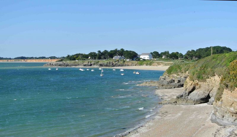 Afgelopen nacht heerlijk rustig met uitzicht op de zee. We zouden met gemak nog een paar dagen op de camperplaats willen staan, maar er zijn twee dingen die we hier wel missen. Een douche (hoewel we als het echt nodig mocht zijn ook wel in de camper kunnen douchen) en een wasmachine/droger. We hebben namelijk voor twee weken schoon goed bij ons en als die om zijn dient er weer gewassen te worden. In Carnac hebben we al een wasje gedraaid en nu is het beddengoed aan de beurt. Vandaar dat we naar camping Le Bois d’Amour rijden dat op nog geen vijf kilometer afstand ligt. Op de weg erheen halen we ook nog een paar boodschappen bij de Super-U die we voor sommige producten een super winkel vinden. We zijn te vroeg bij de camping want in Frankrijk wordt er van twaalf tot twee gegeten en dan moet je ze niet storen. Voor ons een gelegenheid om alvast de camping te onderzoeken en te kijken naar welke plaatsjes onze voorkeur uit gaat. Op het eerste gezicht lijkt het een beetje ondermaatse camping met overal geel gras of zelfs helemaal geen gras meer. Nadat we ingecheckt hebben zijn we van mening veranderd. Aardig personeel, we krijgen de plek van onze eerste keuze, gratis WIFI ‘al over the place’ en een wasmachine+droger die hun mannetje staan (wel voor negen euro samen overigens). Om vijf uur hebben we de warme maaltijd op, is de was gedaan en kunnen we er op uit om nog een wandeling langs de zuidkust van het schiereiland te maken.