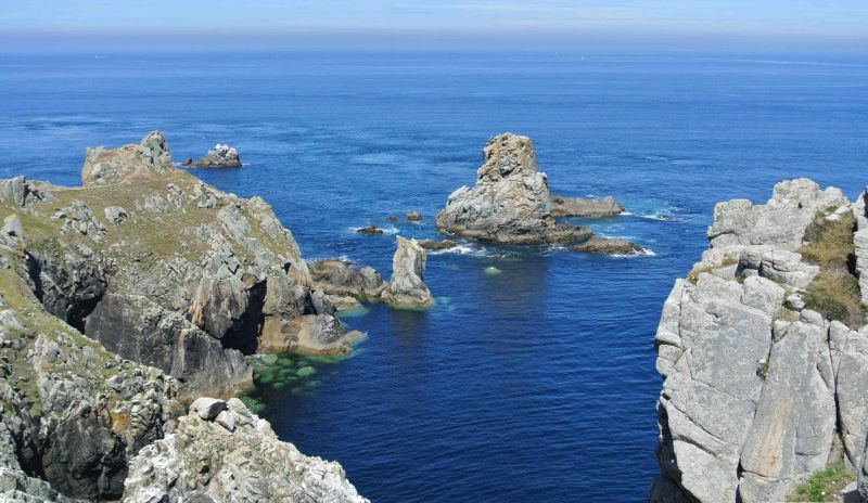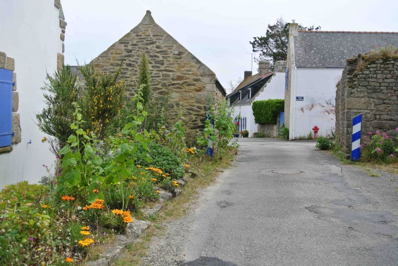 De rotspunt wordt druk bezocht door toeristen en er wordt dan ook druk gefotografeerd. Wij vinden deze rots echter minder spectaculair dan Pointe du Van. Dit wordt voor een deel goedgemaakt door het zicht op het eiland îll-de-Sein dat op ongeveer tien kilometer voor de kust ligt. Nadat we alles bekeken hebben lopen we verder langs de zuidkust van het schiereiland. Ook nu de ene prachtige rotspunt na de andere al raak je er van lieverlee ook wel een beetje aan gewend. Ter hoogte van het gehucht Lescoff verlaten we het kustpad en lopen via een track en tussen de huizen van Lescoff door terug naar de camper. Nu nog een uurtje rijden naar de camping van Locronan die we voor vandaag als overnachtingsplek hebben uitgekozen. We krijgen een prachtige plek met uitzicht op een dal en kijken uit tot aan de oceaan.