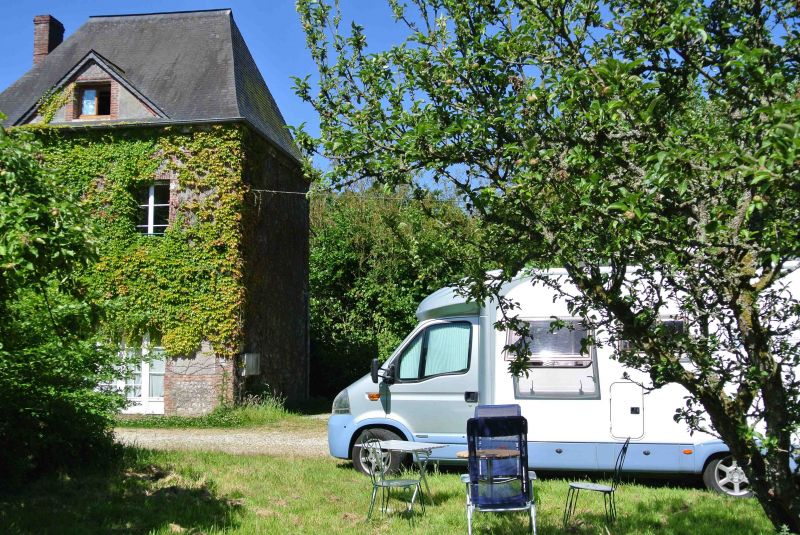 Voordat wij uit de veren zijn is er al een aantal campers vertrokken. Terwijl ik me met het maken van het ontbijt bezig houd komt er een bus met aanhangwagen van Kras Fietsvakanties het terrein op draaien. In no time staan een dertig tal ‘jongere ouderen’ de stramme spieren middels vliegbewegingen klaar te maken voor een fietstocht terwijl intussen de aanhangwagen wordt leeggemaakt. Bij navraag blijkt de groep in een week al fietsend Normandië te ontdekken. Gisteren heeft men 75 kilometer gefietst en vandaag staat een rit van 45 kilometers naar het bekende Mont Saint Michel op het programma. Doordat men in een hotel in Caen verblijft moest men vanmorgen al om acht uur de bus in. Wij hebben dat soort ongemakken gelukkig niet en gaan pas tegen half twaalf op reis. Clive en Maureen verblijven deze week in een gîte in Bretteville. Omdat dit een gehucht in de ‘middle of nowhere’ is willen wij op de een parkeerplaats in het nabijgelegen dorp Tôtes overnachten dat net als gisteren zo’n 265 kilometers rijden vergt. Onderweg erheen wordt er ditmaal wel zelf gekookt waardoor het tegen vijven loopt als we daar arriveren. Na een snelle douche ga ik op de fiets verkennen waar de gîte precies is gelegen, terwijl Aukje ondertussen de camper op orde brengt. Zowel Google als de TomTom kunnen het opgegeven adres niet vinden en naar later blijkt is dat ook wel een beetje te begrijpen. Via een smal weggetje en een doodlopend pad kom ik uit bij een in het groen gelegen voormalige boerderij waar Clive & Maureen me direct opvangen. Op mijn vraag of de camper hier ergens in de buurt kan staan gaat Clive direct op onderzoek uit. Om het verhaal kort te maken staan we een half uur later met de camper naast de gîte geparkeerd. Tijd om tijdens een avondwandeling bij te praten en samen een gezellige avond door te brengen.