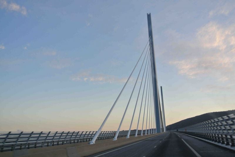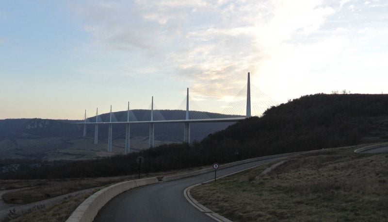 Bij het punt dat we oorspronkelijk zouden afslaan naar La Barbory programmeren we de TomTom voor een geschikte overnachtingplaats voorbij het sneeuwgevoelige gebied, maar zodanig dat het vanavond niet al te laat zal worden. We komen uit op camperplaats Domaine La Chartreuse in het plaatsje Corneilhan vlakbij Béziers. Dit houdt in dat we nog driehonderd kilometers extra moeten doen. We gaan er echter voor en knorren langs de A75 verder richting Millau waar men een grote tolbrug over de Tarn heeft gebouwd. Hoewel we in beginsel niet voor tolwegen kiezen willen we ditmaal daar van afwijken. De brug verkort de reistijd met bijna een half uur en is daarnaast de moeite waard om te bekijken. Het al gaat schemeren als we de brug bereiken maar toch even door naar het uitzichtpunt maken zodat Aukje nog een foto kan nemen. Nadat we over de brug zijn wordt het snel donker en het laatste stuk slingersnelweg doen we dus zonder dat we iets