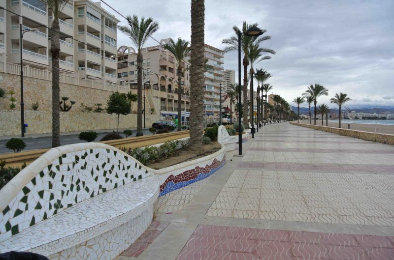 Vannacht heeft het geregend maar de hoeveelheid water mag geen naam hebben. Vanmorgen is het droog maar bewolkt. Het is best wel fris en moet je een jas aan hebben. We ontbijten binnen en besluiten om vanmiddag een ommetje te maken om zo omgeving te inspecteren. De afstand naar het strand bedraagt ongeveer 200 meter. Langs het brede zandstrand is een mooie boulevard met vlak daarachter de trambaan die langs de gehele kusstrook van Alicante tot voorbij Benidorm voert. We zijn zowat de enigen op het strand maar aan de aanwezige voorzieningen te zien zal dat in de zomer wel anders zijn. Na een stukje strandwandeling en een paar foto’s houden we het voor gezien. Ons volgende doel is de camping Le Jardin vlakbij onze camperplaats.