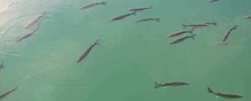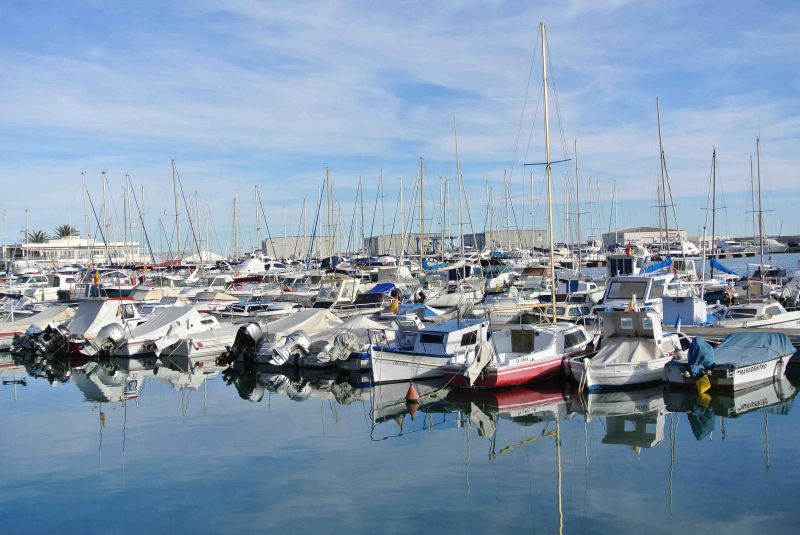 We lopen verder en komen even later bij de monding van de droge rivier (Riu Sec) zodat de boulevard wordt ingewisseld voor een stuk natuurpad. Daarna bereiken we het strand van El Campello. Het is tijd om de maag te vullen en ons oog valt op een Engels sportcafetaria waar fish & chips ons toelonkt. Deze valt uiteindelijk wat tegen, maar met een paar pilsjes erbij kunnen we er weer tegen. We lopen vervolgens naar de haven en koesteren ons al lopend in een heerlijk zonnetje. Het water is kraakhelder en je kunt zo de vissen in het water zien zwemmen. Ter hoogte van een restaurant valt het op dat er opvallend grote vissen in het water paraderen. Hier valt kennelijk wel eens wat van de wagen. Op de terugweg zien we een paar kinderen de vissen voeren, wat tot grote activiteit in het water aanleiding is. Aukje suggereert nog dat de restauranthouder de vissen wel zo uit het water zal scheppen, maar ik betwijfel of deze vissen op deze manier op het bord raken.