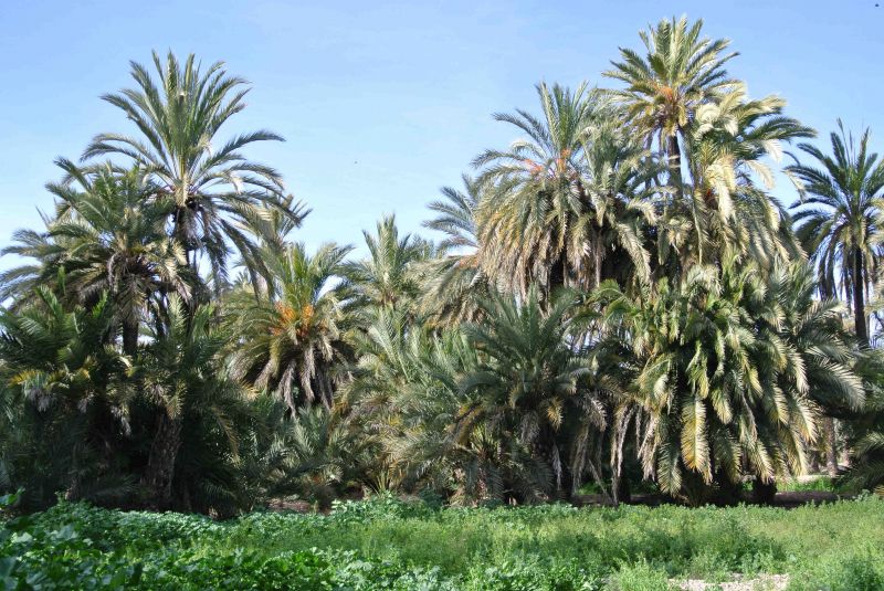 Aukje hoest met tussenpozen nog steeds en de genezing wil nog niet erg vlotten. We gaan, met een tussenstop bij de Lidl, naar het centrum van de plaats Elche op ongeveer 40 kilometer rijden. In het verleden hebben de Moren in Elche een grote hoeveelheid dadelpalmen aangepland en deze geëxploiteerd. Deze tuinen zijn nog steeds intact en inmiddels op de wereld erfgoedlijst terechtgekomen. We parkeren de camper op een plekje in de buurt van de tuinen en volgen het boekje van de ANWB waar een wandelroute is afgebeeld. Het blijkt de officiële Ruta de Palmares van ongeveer drie kilometer lengte. Tijdens het volgen van de route vinden we dat men er weinig werk van gemaakt heeft om de palmentuinen te promoten. De route leidt grotendeels aan de buitenkant om de tuinen, zonder enige uitleg of mogelijkheid om de bezoekers erbij te betrekken.