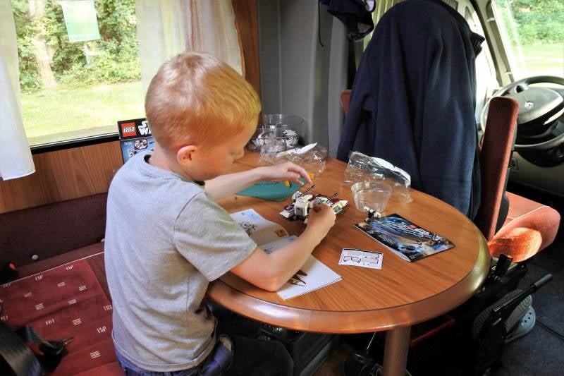 Uiteindelijk bleek de regen gisteren van korte duur. Terug uit het zwembad was het inmiddels al weer droog en tegen de avond brak zelfs al weer een zonnetje door. Een leuk slot aan ons verblijf in Willingen, met een prachtig uitzicht vanaf de camperplek. Woensdagmorgen is het inpakken geblazen, want we vertrekken vandaag naar onze volgende etappeplaats, het oude Hanzestadje Attendorn vlakbij de Biggesee. Voor we aan de rit van ongeveer anderhalf uur over kronkelwegen door het Sauerland beginnen, doen we nog even boodschappen in het centrum van Willingen. Eerst bij de plaatselijke Lidl, maar vervolgens bij speelgoedwinkel ‘Die Schatkiste’ waar Jelle zijn oog laat vallen op een bouwdoos van Lego en een lichtgevende stuiterbal. Nog maar juist gearriveerd op de camping bij de Biggesee wordt gestart met de assemblage van een heuse tank en een uurtje later is het voertuig al inzetbaar. In dit geval gelukkig voor ‘spielerei’ en niet voor ernstiger zaken. Wij vermaken ons verder vanavond met een DVD van Bambi, want ook hier belemmeren de hoge bomen het zicht op de satelliet.