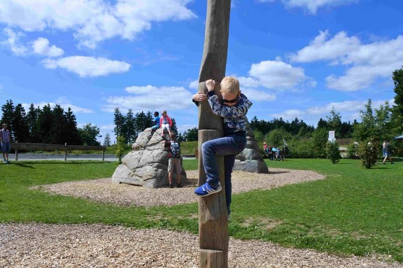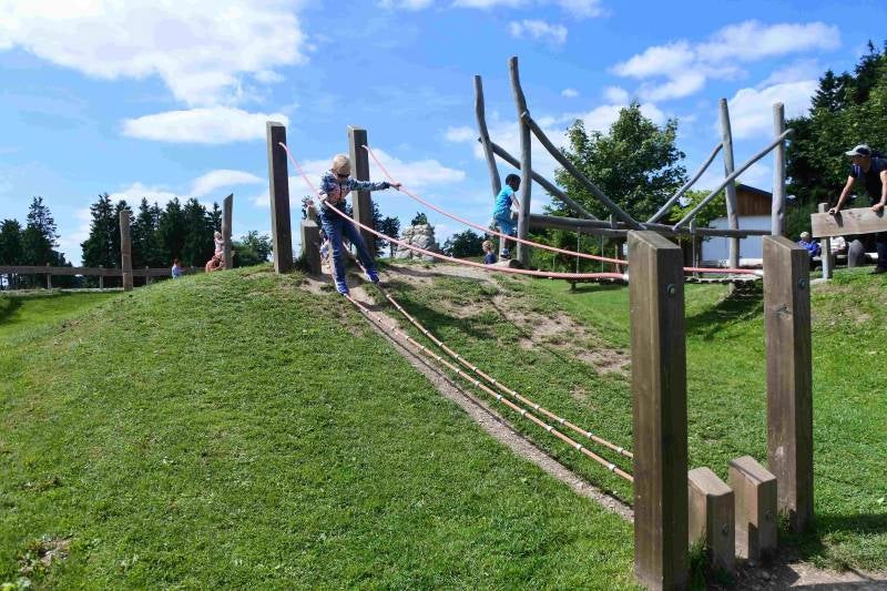 Boven op de Ettelsberg is een waar speelparadijs voor kinderen aangelegd en Jelle neemt de kans waar om nog stukje parcours mee te pikken vóórdat we aan de wandeling beginnen.