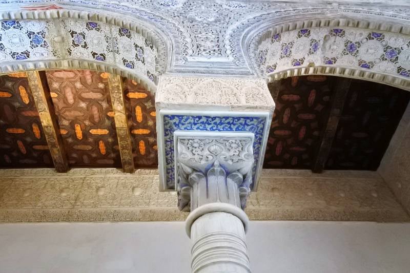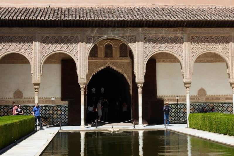 Na een kleine lunchpauze zijn we aan de beurt om het Nasrid paleis te bezoeken. Dit bestaat uit een verzameling kleinere gebouwen die via gangen en doorsteekjes aan elkaar gekoppeld zijn. Bij binnenkomst valt natuurlijk direct de Arabische bouwstijl op. Niet alleen de indeling met centrale waterpartijen is smaakvol gedaan, maar ook de constructie en vooral de versieringen zijn schitterend om te zien. Enorm verfijnd en gedetailleerd. In vergelijking hiermee is het (later gebouwde) paleis van Karel maar een lompe steenklomp. De ene ruimte is nog verfijnder gedecoreerd dan de andere. Nadat we ook nog de naastliggende tuin hebben bekeken gaan we door naar het Alcazaba, het fort.