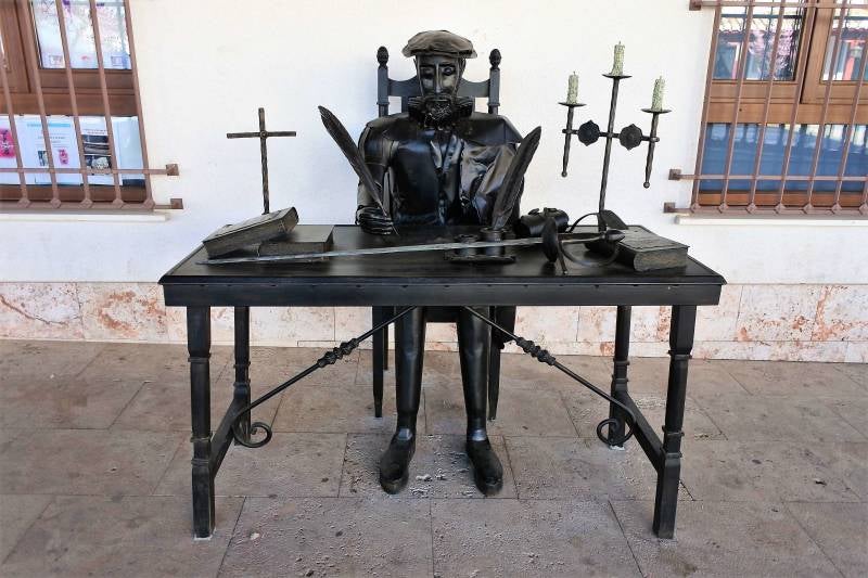 Vandaag de eerste etappe richting huis. Eerst onderweg nog even boodschappen doen: een volle gasfles, boodschappen bij Lidl en… even sneupen in een tuincentrum om een paar Spaanse plantjes te scoren. Daarna kan de in totaal ongeveer 300 kilometer lange rit van vandaag beginnen. Doordat het hele stuk over de autoweg kan worden gereden, verloopt de reis vlot en rond half vijf rijden we de camperplaats van Puerto Lápice op. Bij aankomst staan er al aardig wat campers en naar later zal blijken is de belangstelling zó groot dat er nog een zevental campers buiten de camperplaats overnachten. Wij hebben een prima plek met uitzicht op een drietal typisch witte Spaanse windmolens. We zijn in het gebied La Mancha beland en dat was het werkterrein van Don Quichot. Tijdens ons ommetje door het dorp worden we herhaaldelijk geattendeerd op het fenomeen dat hier vierhonderd jaar terug moet hebben huisgehouden.