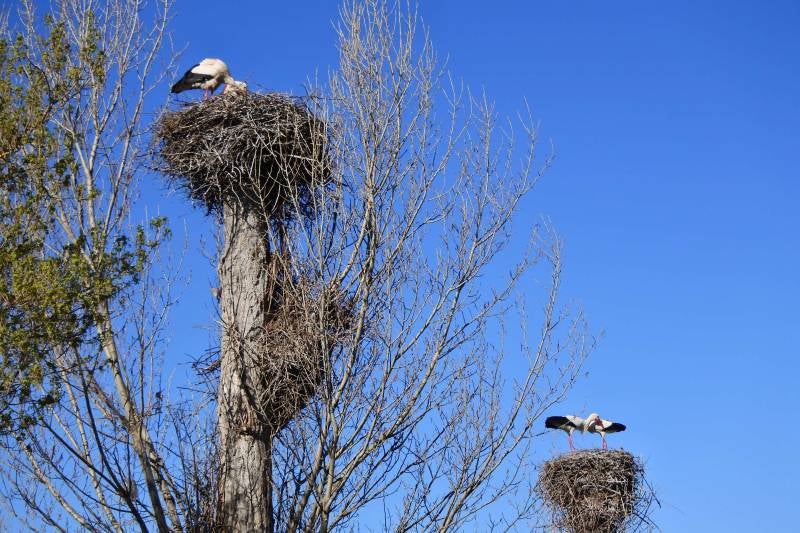 Na een rustige nacht op deze prima camperplaats vertrekken de meeste camperaars al weer op tijd. Wij zijn in de regel niet zo vlot, dus op het moment dat wij de motor starten is het al tien uur geweest. Toch zijn we rond vier uur al weer op onze plaats van bestemming voor vandaag. De rit van 355 kilometers ging ook nu geheel over de snelweg en rond Madrid bleek het op zondagmorgen nog erg rustig. Camping Fuente de la Teja in Soria heeft, ondanks de paasvakantie, nog volop ruimte en wij vinden een prima plekje met gras voor de deur. Op steenworp afstand staan meerdere ooievaarsnesten en er wordt af en toe al flink geklepperd. Het blijkt hier dus niet risicovrij en daarom hebben we voor de zekerheid de luiers goed opgeborgen.