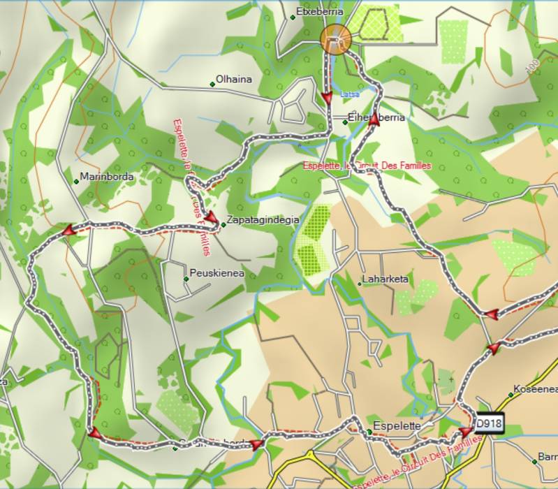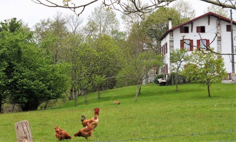 Vanmorgen bleek het ongeveer 17 graden in de camper. Een heel verschil met gisterenmorgen toen het tien graden kouder was. Maar ja, we zitten nu ook duizend meter lager en bovendien niet al te ver van de kust. Op deze rustdag willen we toch even de benen strekken en daarom heb ik een rondwandeling in de omgeving uitgezocht. Volgens opgave is het een familiewandeling van ongeveer zeven kilometers. Het blijkt een leuke en afwisselende wandeling die ons langs binnenpaadjes en over beekjes voert. Halverwege komen we door het centrum van Espelette dat we dus ‘en passant’ ook even kunnen bekijken. Een leuk oud dorp dat op toerisme is ingesteld en waar de befaamde rode pepers natuurlijk niet ontbreken. Tegen etenstijd zijn we weer terug op de camping. Vandaag wordt het buiten eten in het zonnetje en bij een aangename temperatuur.