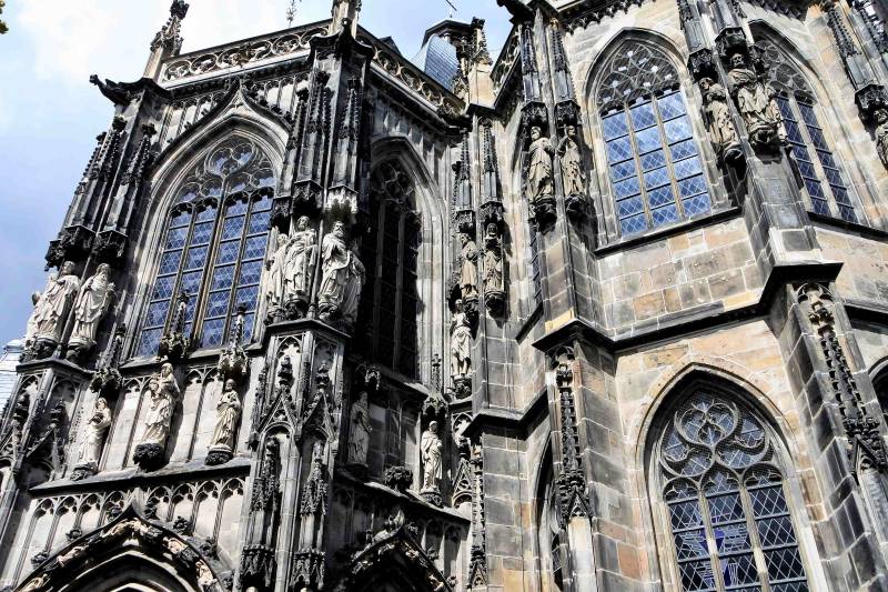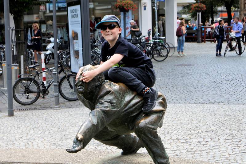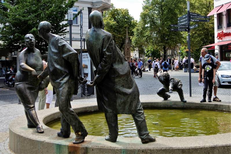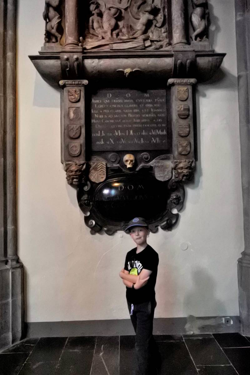 Vandaag staat een bezoek aan de binnenstad van Aken op het programma. Nadat de bus ons bij de Elisenbrunnen heeft gebracht, gaat de wandelroute naar het centrum van Aken, maar niet voordat een speelgoedwinkel is bezocht. Voorzien van een verse lading Pokémon plaatjes lopen we richting de Dom. Vorig jaar heeft oma aan Jelle beloofd dat we hem een grote kerk laten zien en deze belofte wordt nu ingelost. De Akense Dom is niet heel groot, maar van binnen prachtig versierd en de machtige marmeren pilaren en schitterende plafonds maken wel indruk op hem. Weer buiten valt zijn oog op de ‘schatkamer van de Dom’ en bij het woord schatkamer is direct zijn belangstelling gewekt. Binnen is een prachtige verzameling schilderijen en kerkelijke voorwerpen te zien en het is opvallend met hoeveel aandacht deze door hem worden bekeken. We vervolgen onze wandeling door het centrum, waarbij het inmiddels tijd is om iets te eten. Terwijl opa en oma een pizza naar binnen werken, bekijkt Jelle zijn nieuw verworven verzameling Pokémon plaatjes. Na dit oponthoud is het tijd voor het zwembad, dus lopen we naar de Carolus Thermen. Dit blijkt een luxe welness bad maar helaas zonder spannende glijbanen. Na een tijdje in de verschillende baden te hebben gezwommen, zit ook dit avontuur er weer op en keren we tevreden terug naar de camperplaats.