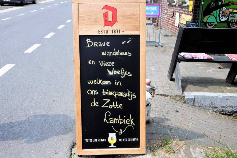 Onze tweede rondwandeling gaat naar het zuiden, een stukje België in. Vanaf de camping lopen we eerst naar het ‘centrum’ van Heyenrath en vandaar buigt de route af naar het zuiden. In deze streek zijn er nogal wat fruittelers en onderweg schaffen we een paar doosjes kersen aan, die zorgvuldig in onze rugzak worden geplaatst om te zorgen dat het niet in kersenjam verandert. Na een smal pad dat overwoekerd is door varens en brandnetels bevinden we ons op het grondgebied van onze zuiderburen. Vanaf hier lopen we door een bos en dat ook vandaag weer bescherming biedt tegen de toch wel felle zon. Verderop is er een monument dat uitbeeldt hoe hier tijdens de Eerste Wereldoorlog een onder spanning staande afrastering heeft gestaan, die flink wat naar het noorden uitwijkende Belgen het leven heeft gekost. Ook vandaag kruisen we een paar maal de ‘rivier’ de Gulp. De eerste keer vlakbij het gehucht Sinnich, waar we langs het gelijknamige kasteel/abdij komen. Het volgende dorp van betekenis is Teuven. Hier valt vooral de uitbundige horeca op die wandelaars zoals wij aan het plaatselijke bier wil krijgen. Onvermoeid vervolgen we onze route en komen via het gehucht Plank weer Nederland binnen, waarna de klim na het dorpje Slenaken voor een laatste beproeving van onze kuiten zorgt.
