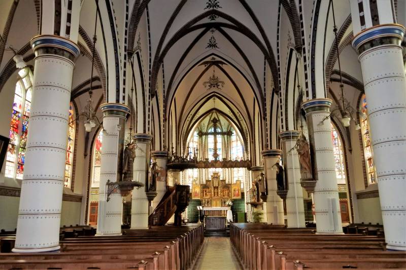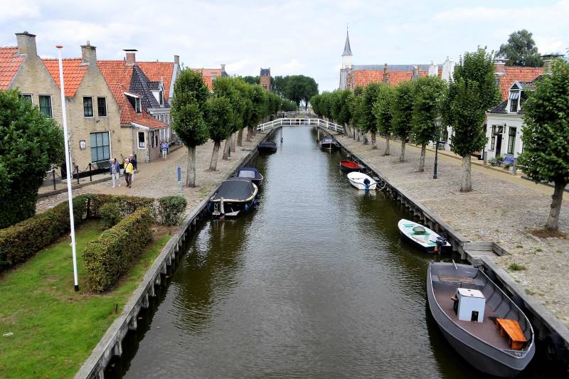 Weer buiten, verkennen we de rest van het stadje Workum. Het centrum wordt gevormd door het plein ‘de Merk’ met het Stadhuis, de oude Waag en daarachter de Sint Gertrudeskerk. De doorgaande hoofdstraat die daar op aansluit, ‘de Noard’, is aan weerszijde bebouwd met prachtige huizen van vaak uit de zeventiende eeuw. We wandelen tot het eind, tot aan de Sint Werenfriduskerk waar we een kijkje nemen en door een vrijwilligster in de kapel worden rondgeleid. Op de terugweg richting de camper lopen we langs de Diepe Dolte, de doorgaande vaart waarlangs vorige week zwemmer Maarten van de Heijden door een menigte werd toegejuicht. Tevreden rijden we daarna over smalle binnenweggetjes naar de stadscamping van Sneek voor onze overnachtingsplek.