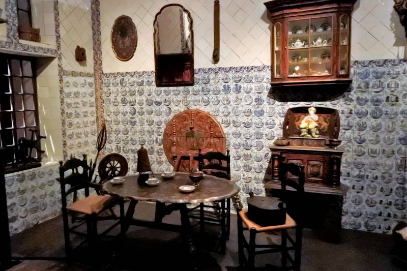 De rondwandeling langs de authentieke huisjes is leuk maar, vanwege de beperkte omvang van het stadje, ook vrij snel klaar. In het voormalige stadhuis, dat nu als museum dienstdoet, verdiepen we ons in de geschiedenis van Sloten dat vroeger op een strategisch kruispunt van water- en landwegen lag. Het stadje was daarom niet alleen van strategisch belang, maar zorgde door het heffen van tol ook voor een aardige bron van inkomsten. Op de bovenste verdieping is een toverlantaarn verzameling ondergebracht. Deze voorloper van de filmprojector bracht bewegende beelden waarmee, op kermissen en in zalen, een groot publiek kon worden vermaakt. Tot slot bekijken we een film over de geschiedenis van het stadje, waarna we op zoek gaan naar de fontein die aan de rand blijkt te zijn opgesteld. Een leuk kunstwerk samengesteld uit een pilaar van emmers, jerrycans en wasbakken met daar bovenop een jongen. Op de schouders van de jongen staat een meisje dat op haar beurt een kievit in haar hand houdt. Nadat we nog een paar Friese oranjekoeken hebben gekocht is het tijd voor de thuisruis. Deze gaat ditmaal door de nieuwe polders en verloopt vlot, zodat vóór het einde van de middag de camper weer naast ons huis wordt neergezet.