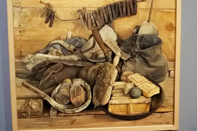 Na de rondwandeling is het tijd voor het museum. De reguliere expositie handelt uiteraard over Friesland met al zijn facetten, maar momenteel is er ook een drukbezochte tentoonstelling van de in Leeuwarden geboren graficus Escher. Vooral deze trekt onze belangstelling en we brengen daarom een flink deel van onze toegemeten tijd daar door. Maar ook de tentoonstelling over Friesland is goed verzorgd en in een kwartiertje bekijken we de highlights ervan, wat eigenlijk wat te kort is om alles goed te bekijken. De wachttijd tot de bus ons terugbrengt naar de camping brengen we in een restaurantje door, zodat we weer huis niet hoeven te koken en kunnen terugkijken op een welbestede dag.