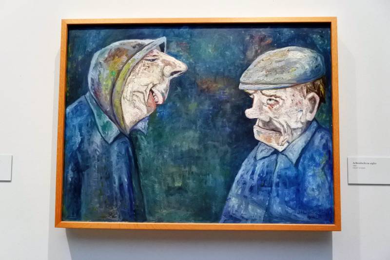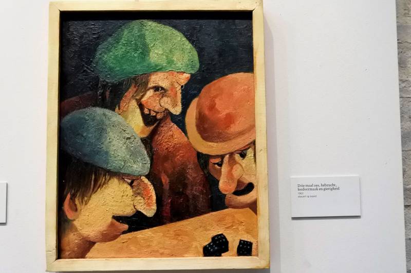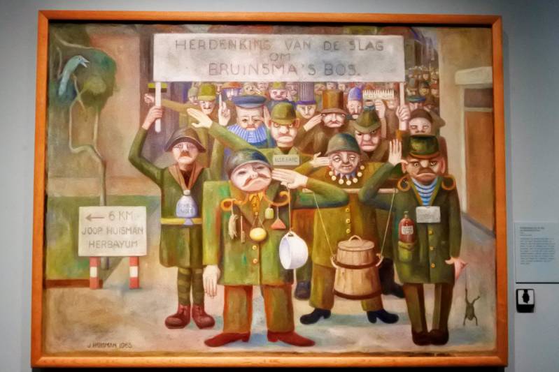 Ons verblijf op deze camping loopt al weer ten einde en vandaag gaan we op weg naar onze volgende overnachtingsplek in Sneek. De rit erheen gaat door het vlakke Friese land en via een omweg voor een bezoek aan Workum. Natuurlijk gaan we het stadje bekijken en ook de fontein, maar vooral ook voor een bezoek aan het Jopie Huisman museum. Na een uurtje rijden naderen we Workum en midden in het centrum is een grote parkeerplaats waar met gemak de camper kan worden neergezet. Terwijl Aukje koffie zet inspecteer ik de omgeving. Een prachtige aanlegmogelijkheid voor jachten met alle voorzieningen en een royale plek voor campers maakt dat ik vind dat men hier de zaakjes voor bezoekers goed voor elkaar heeft. Na de koffie stappen we het gezellig drukke centrum in en een paar blokken verder duikt het museum op. Jopie Huisman was een markante man in Workum en later ook in heel Nederland bekend. Begonnen als handelaar in lompen en metalen heeft hij al vanaf zijn jeugd zijn talent voor tekenen en schilderen ontwikkeld. De in 2000 overleden Huisman heeft nog mogen meemaken dat zijn werk, hij wilde niets verkopen, in ‘zijn’ museum tentoon werd gesteld. Het huidige museum is prachtig ingericht en je merkt ook dat de mensen die er nu werken met liefde hun taakopvatting ten uitvoer brengen. Vanwege de Culturele hoofdstad van Europa is een collectie van 35 werken van vooral uit zijn eerste levensfase, die zijn uitgeleend aan het museum van de Zwitserse zakenman Frederik Paulsen, terug in Workum. Bij een bezoek aan het museum wordt als inleiding een film over het leven van Jopie Huisman vertoond, die wordt gepresenteerd door Jopie’s oudste zoon Pepy. Al met al een prachtige en indringende tentoonstelling die het bezoek meer dan de moeite waard maken.
