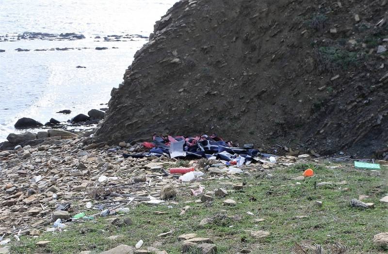 Onderweg zien we verschillende rubberbootjes waarvan nu alleen nog flarden over zijn. En aan de overkant is, ondanks het matige zicht, de Afrikaanse kust goed te zien. Met een afstand van slechts vijftien kilometers kunnen we ons voorstellen dat er heel wat oversteekpogingen zijn ondernomen. Na het stuk langs de kust gaan we over een smal en soms lastig te belopen pad omhoog de heuvels in. Het laatste deel van de tocht is zeker niet het gemakkelijkst. Een horde koeien rent voor ons uit en zorgt er daarmee voor dat er voor ons een modderspoor overblijft. Terug bij de camper besluiten we om de nacht ter plekke door te brengen.