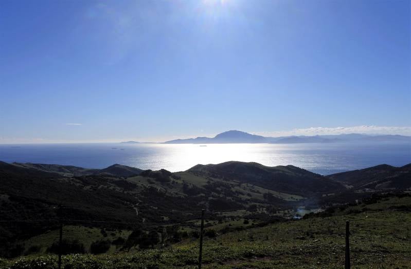 Vaak wordt gedacht dat de rots van Gibraltar het punt is waar Spanje het dichtst bij Afrika ligt. Bijgaande uitsnede van het Google Maps kaartje laat zien aan dit een stukje westelijker het geval is. En in dit gebied, in het Park Natural del Estrecho, gaan wij vandaag een rondwandeling maken. We rijden zo’n 35 kilometers naar het westen tot even voorbij de Spaanse havenplaats Algeciras. Daar parkeren we de camper vlakbij het bezoekerscentrum Huerta Grande. Een vluchtig bezoekje aan het bezoekerscentrum leert dat we daar niet al te veel tijd aan hoeven te besteden. En veel tijd hebben we ook niet, want de rondwandeling neem naar schatting meer dan vijf uur in beslag. De route gaat eerst over een gemakkelijk beloopbaar track omlaag richting de kust, met onderweg hier en daar een groepje huizen of een afgelegen boerderij. Vervolgens volgen we het kustpad dat ons beurtelings langs het strand en dan weer langs flinke kliffen stuurt.