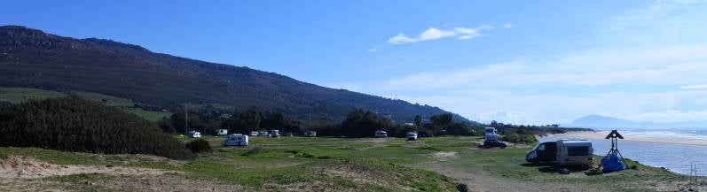 Bij aankomst was het juist droog geworden en op de camping was het effect van enkele dagen met regen nog overal zichtbaar. Zoals eerder gemeld mochten wij met onze camper op asfalt parkeren, zodat de een modderbad ons bespaard bleef. Een regelrechte teleurstelling is de douche, die maar niet warm wil worden. Als dit uiteindelijk toch is gelukt wordt hij halverwege de douchebeurt al weer koud. De camping is maar matig bezet met vooral Duitse camperaars. Dus vandaag in mijn beste Duits wat gesprekjes aangeknoopt met de mensen die dit alles weten te trotseren. Zoals vaak lopen de meningen ook nu uiteen, maar over de douche en de slechte bodemgesteldheid is men het eens. Dat laatste bestrijden de ‘volhouders’ met grote dekkleden die bijna het hele oppervlak van de kampeerplek afdekken. Over de regen van de afgelopen tijd is er minder eenduidigheid. De één zegt dat dit in dit seizoen vrijwel elk jaar zo is en een ander vindt het uitzonderlijk nat en geeft de klimaatverandering hiervan de schuld. Op de vraag waarom dan toch hier op deze camping, is het antwoord: Je kunt hier goed vissen en als je een maand boekt krijg je een flinke korting. Wij vinden het na drie nachtjes hier wel genoeg en maken vanmiddag nog een ommetje om het dorpje Zahara de los Atunes te bekijken en een pizza te eten.