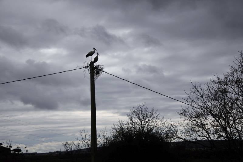 Voor vandaag is midden op de dag een poosje regen voorspeld. Wij willen vandaag toch gaan wandelen en er is een niet al te lange wandeling die vanaf de camping start. Bovendien is de wandeling in een 8-vorm, zodat als het nodig is de wandeling in twee stukken kan worden geknipt. Vanaf de camping gaat de route omlaag naar het dal van de rivier de Rabate. Het dal met vlak groen land is een gunstige plek voor tuinbouw en fruitteelt. De mensen die dit verbouwden werden vroeger Mayetos genoemd, omdat ze hun producten gewoonlijk in de maand mei naar de dorpen brachten. Een stuk verder langs de route zien we een aantal ooievaars op hun nesten, altijd een leuke gewaarwording. Tegen de tijd dat we één cirkel van de 8-vorm hebben afgelegd zet toch de regen in. Geen nood, want binnen 1 kilometer afstand van de camper zijn we snel weer thuis. Tegen de avond volgt het restant van de wandeling. Die gaat langs een stuk met één kant een begroeiing van vooral cactussen en terwijl aan de andere kant wat luxueuzer bebouwing staat, met bijbehorende afrasteringen en alarmsystemen. Hier heeft de vroegere boerenbevolking het veld moeten ruimen voor meer kapitaalkrachtige mensen.