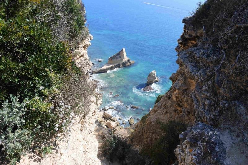 Ten noordoosten van de camping ligt het natuurpark La Breňa met daarin een oude uitkijktoren: Torre de Meca. De wandeling van vandaag voert door het park en langs de toren naar Punta Paloma aan de kust. De gedownloade wandeling gaat niet langs onze camping, dus het ontbrekende stukje heen en terug moeten we zelf verzinnen en er nog aan vast plakken. Op de kaart heb ik gezien dat er vanaf de camping een weggetje naar het gehucht La Caňada del Alamo voert en daarna precies op onze route uitkomt. In werkelijkheid blijkt het een track dat het boerenland in gaat en aan de ingang is afgesloten met een hek. Wij schrikken voor een hekje niet terug en een halve kilometer later komen we in de buurt van het dorp. Alleen wordt de doorgang verspert door een paar boerenerven. Zodra de boer ons gezien heeft kunnen we niet om hem heen en weer even later weten we dat we op zijn privé terrein zijn en niet verder kunnen of mogen. Hij duidt ons een weg terug en geeft vaag aan waar we wel langs mogen. Zijn raad opvolgend blijkt dat we gelijk het spannendste deel van de wandeling achter de rug hebben. De wandeling verloopt verder volgens plan met als hoogtepunten de mirador bij de Torre de Meca en de mooie rotsformaties bij Punta Paloma. Na een wandeling van ongeveer 16 kilometers in perfect wandelweer komen we voldaan terug op de camping.