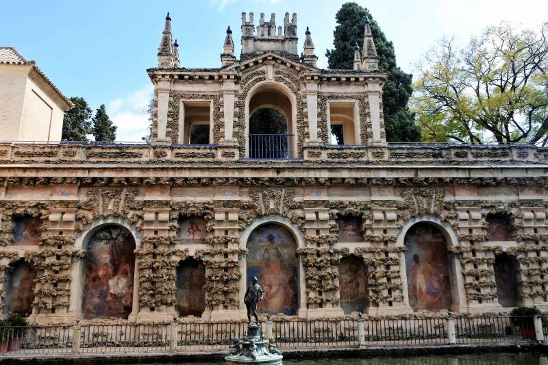 Vandaag gaan we opnieuw naar de stad, nu om de wandeling van gisteren af te maken. Ditmaal slagen we er in om de bus van half tien te halen. In Sevilla aangekomen lopen we direct naar het Real Alcazar in de verwachting dat de rij wachtenden nu wel kleiner zal zijn. Dat blijkt ijdele hoop, want er zijn vandaag nog meer belangstellenden dan gisteren. Hier zijn we wel een paar uur zoet mee. We staan net in de rij als we worden aangesproken door iemand die zich voorstelt als gids Sergio. Hij wil ons rondleiden, hetgeen natuurkijk wat moet kosten, maar als bijkomend voordeel geldt dat we niet lang in de rij hoeven te wachten omdat hij als gids voorrang heeft en voor ons de kaarten zal kopen. We besluiten om op het aanbod in te gaan en een half uurtje later is het organisatorische werk gefikst en staan we met een groepje van twintig mensen binnen.