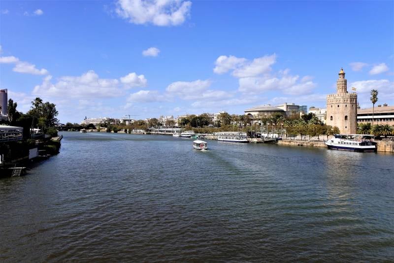 Sevilla is de hoofdstad van Andalusië en heeft een ruim 700.000 inwoners. Haar historie gaat terug tot ver voor de Romeinse tijd, naar schatting tot het jaar 1000 voor Christus en dus vergelijkbaar met die van Cádiz. De uitgestrekte vallei van de rivier Guadalquivir maakt dat Sevilla op slechts 20 meter boven zeeniveau ligt en dat er geen bergen in de wijde omgeving zijn die de toegang of de ontwikkeling van de stad konden bemoeilijken. Het betekent dat de 88 kilometers vanaf de kust tot in Sevilla over de Guadalquivier, door niet al te grote zeeschepen kunnen worden afgelegd. Maar ook dat de stad een geliefd doelwit was voor verschillende veroveraars. Zo werd de stad in 600 voor Christus al veroverd door Feniciërs en Cartageners en vervolgens door de Romeinen, Vandalen, Visigoten, Moren, Vikingen en tenslotte weer door de Christenen. De naam Sevilla is afgeleid van de naam die de Moren aan de stad hebben gegeven. Tijdens Moors bewind in de periode tussen 700 en 1000 na Christus kwam de stad tot grote bloei. Het behoorde in die tijd al, samen met Cordoba en Granada, tot de belangrijkste steden van Andalusië. Vanaf de Romeinse tijd kende Sevilla ook een Joodse gemeenschap en die woonde vrij ongestoord in wijk Santa Cruz. Vanaf rond 1500 veranderde dat. De Moren werden verdreven of gedwongen zich te bekeren en ook de Joden ontkwamen door een pogrom en de inquisitie niet aan vervolging. Na de Spaanse kolonisatie van het pas ontdekte Amerika, werd Sevilla de belangrijkste zeehaven voor de handel tussen Europa en Amerika en ook de thuisbasis van de beroemde zilvervloot. Rond het jaar 1500 groeide de bevolking al tot ongeveer 100.000 inwoners. In de 17e eeuw begon de macht van Sevilla af te nemen. Onder meer doordat de havenfunctie door Cádiz werd overgenomen, maar ook door een financiële crisis, een pestepidemie en verschillende overstromingen. Sevilla wordt door velen een ‘openluchtmuseum’ genoemd en staat vol met historische monumenten, kerken, parken en palmtuinen en ook overblijfselen van vele verschillende culturen.