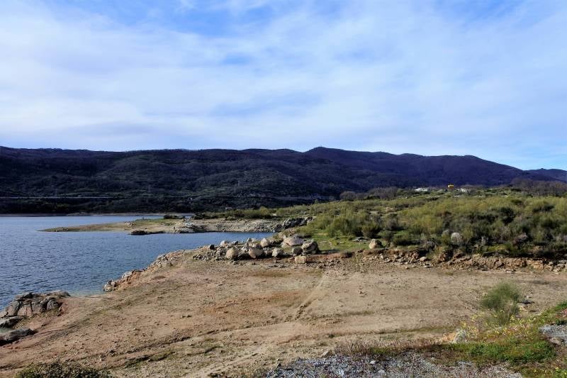 Ons bezoek aan Sevilla was het laatste onderdeel dat Aukje in haar programma heeft voorbereid. Van hieruit vangen we de reis huiswaarts aan en die heb ik in zeven etappes onderverdeeld. Omdat we het laatste stuk vanwege de verkeersdrukte in het weekend willen afleggen, schieten er nog een paar dagen over om onderweg uit te rusten of om nog iets te ondernemen. Vandaag staat ons een rit van 387 kilometer pal noordwaarts te wachten tot bij de camping van Baňos de Montemayor. De rit gaat vrijwel uitsluitend over de snelweg, dus dat schiet wel op. Tijdens het grootste deel rijden we door saai landschap over vrijwel rechte wegen. Slaapverwekkend dus. In de buurt van de camping aangekomen zien we plots links en rechts besneeuwde toppen en blijkt dat we inmiddels toch op zeshonderd meter hoogte zijn aanbeland. Op de camping is het erg rustig en de meeste plaatsen worden ingenomen door mensen met caravans die hier een seizoenplaats hebben en momenteel afwezig zijn. De temperatuur is goed en de zon schijnt ook uitbundig. Voor ons dus een prima overnachtingsplek en na het eten maken we nog een ommetje naar het nabijgelegen stuwmeer.