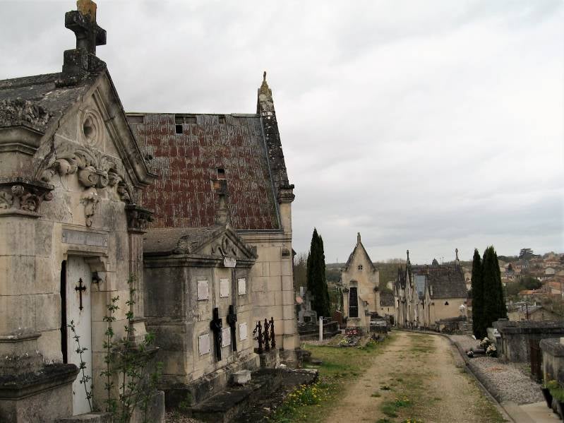 Een oud kerkhof is iets wat Aukje niet zomaar links kan laten liggen en de vervallen staat ervan spreekt haar juist bijzonder aan. Ja, ieder zijn smaak natuurlijk. Ook Ruffec voldoet aan alle Franse normen, dus met veel oude en onderhoudsbehoeftige huizen die er in deze tijd van het jaar extra grauw uitzien. Een pluspunt is dat men de doorgaande route N10 met een boog om het stadje heeft geleid, een voorbeeld dat voor veel meer Franse stadjes navolging verdient, want het centrum blijft daardoor een stuk leefbaarder en gezelliger.