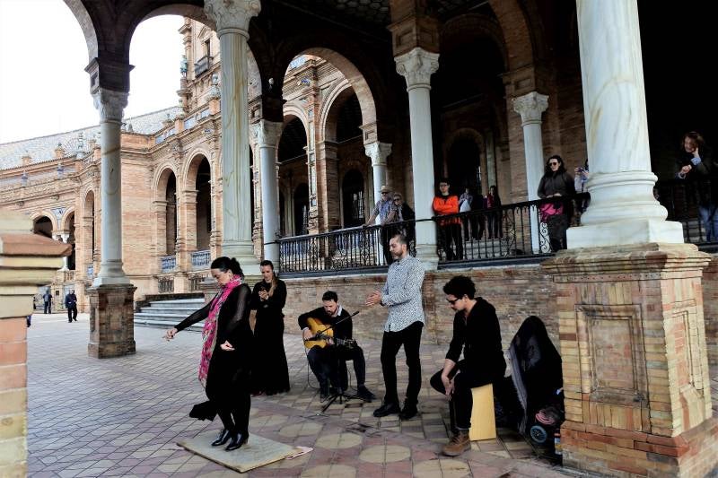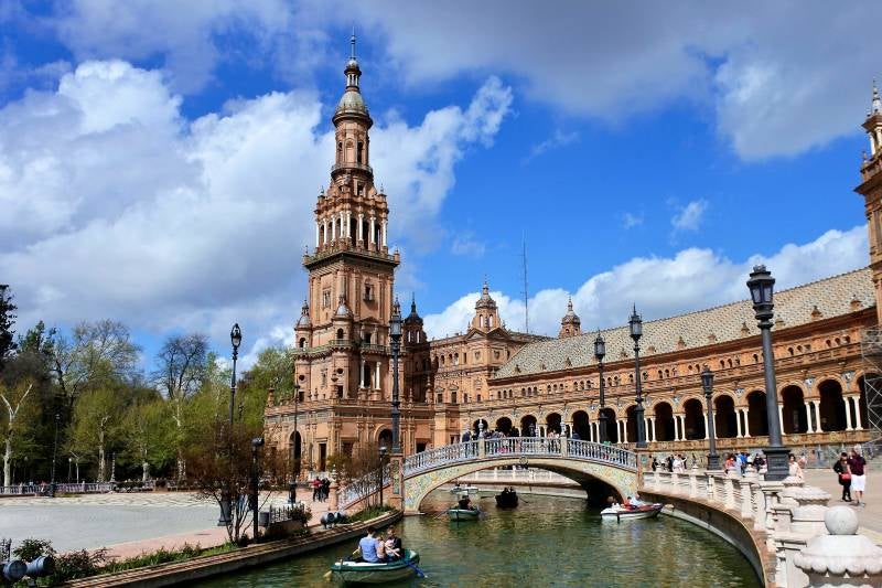 Na de tabaksfabriek komen we bij het Plaza de Espaňa. Dit grote gebouw was het Spaanse paviljoen voor de Iber-Americo tentoonstelling van 1929. Het bijzondere gebouw met verschillende bouwstijlen is, samen met het plein ervoor, tegenwoordig een grote publiekstrekker.