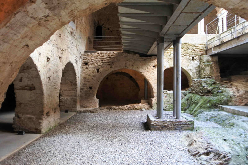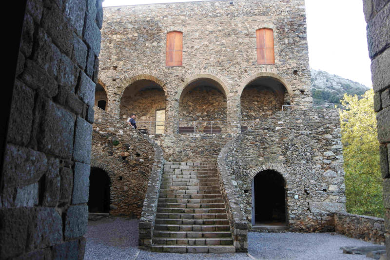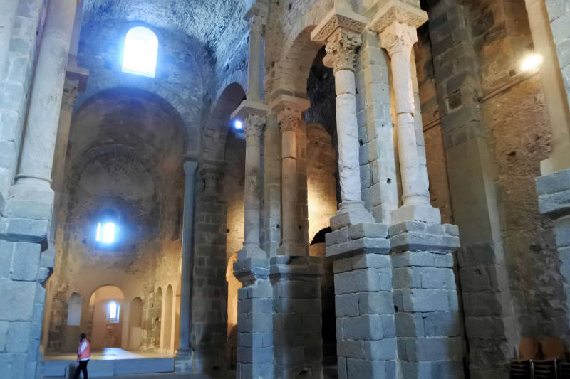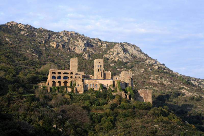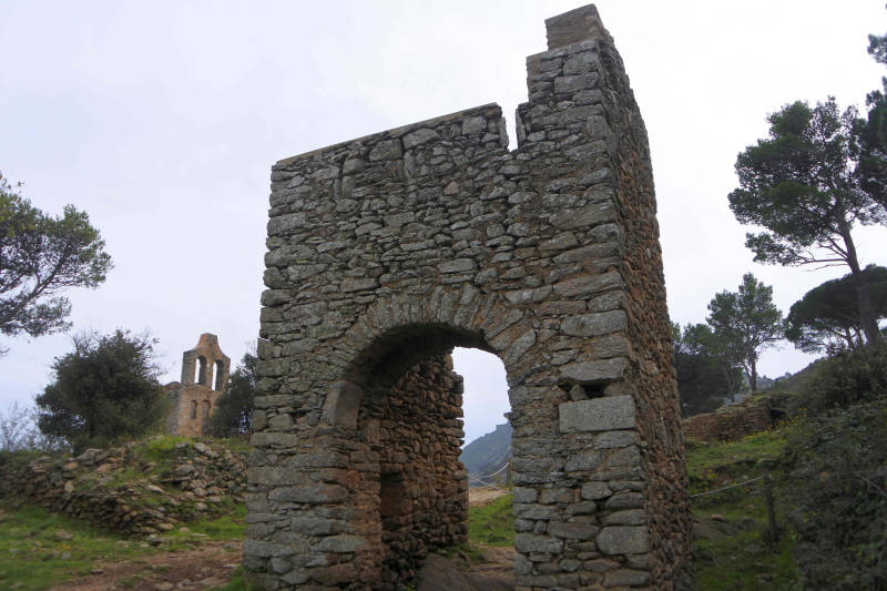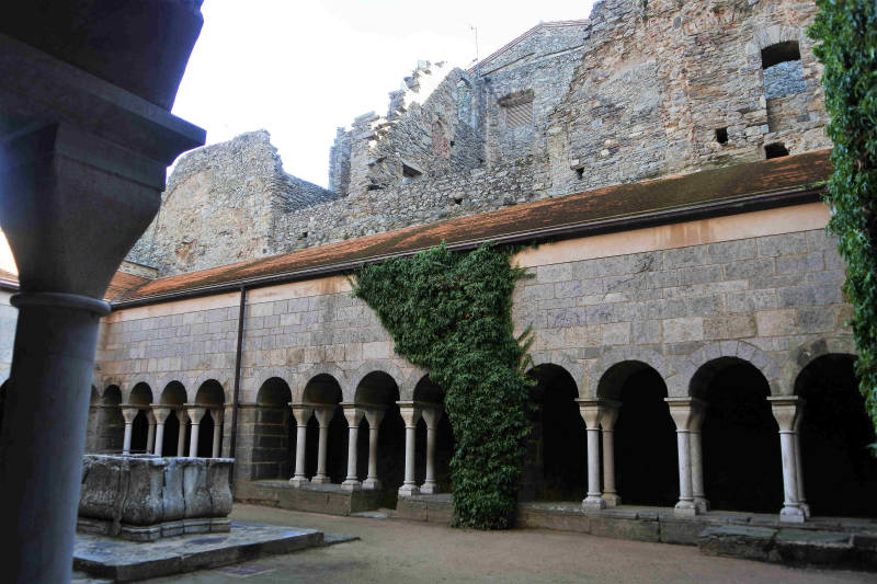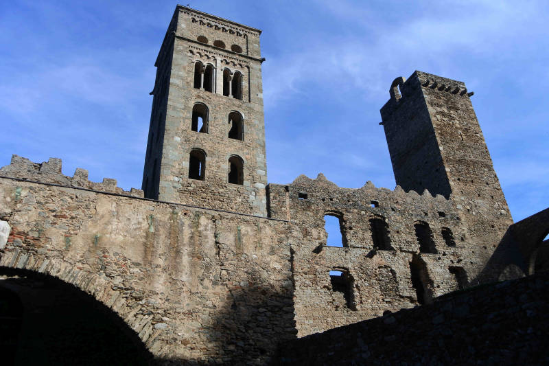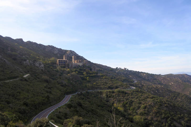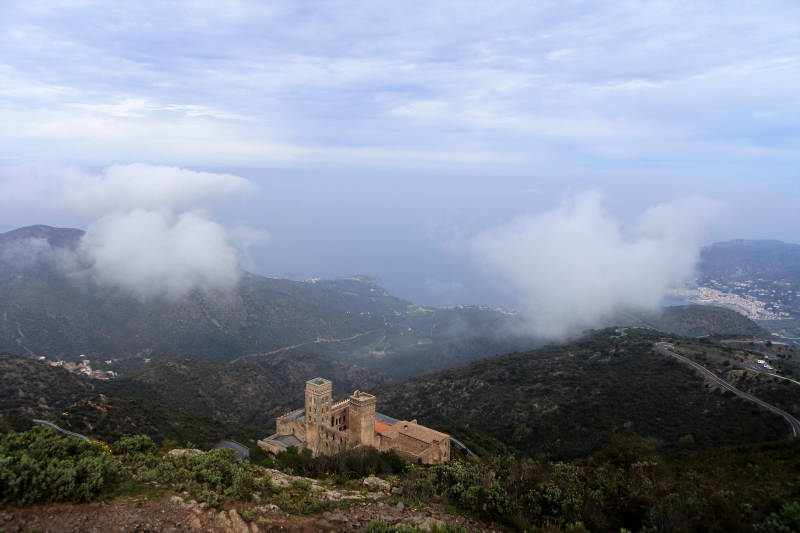 De parkeerplaats die we momenteel als overnachtingsplek gebruiken hoort bij het nabijgelegen Monistir Sant Pere de Rodes. Dat geldt ook voor de ruïne, die men voor een deel heeft hersteld en nu voor verder verval wordt behoedt. Wij maken een rondgang met behulp van een audio gids in het Nederlands en waarmee de geschiedenis goed uit de doeken wordt gedaan. De eerste kerk gaat terug tot de tiende eeuw. Daar waar elders een oude kerk voor een nieuwe moest plaatsmaken heeft men hier de nieuwbouw boven op de oude geplaatst. Hierdoor kun je de verschillende bouwsels goed onderscheiden. Naast de kerk is een benedictijner klooster gebouwd waarvan in de loop der tijd ook verschillende uitvoeringen te herkennen zijn. Helaas is de staat van het klooster aanzienlijk slechter dan die van de kerk. In de loop der eeuwen is het klooster een belangrijk doel voor pelgrims geweest, vergelijkbaar met het huidige Santiago de Compostella.