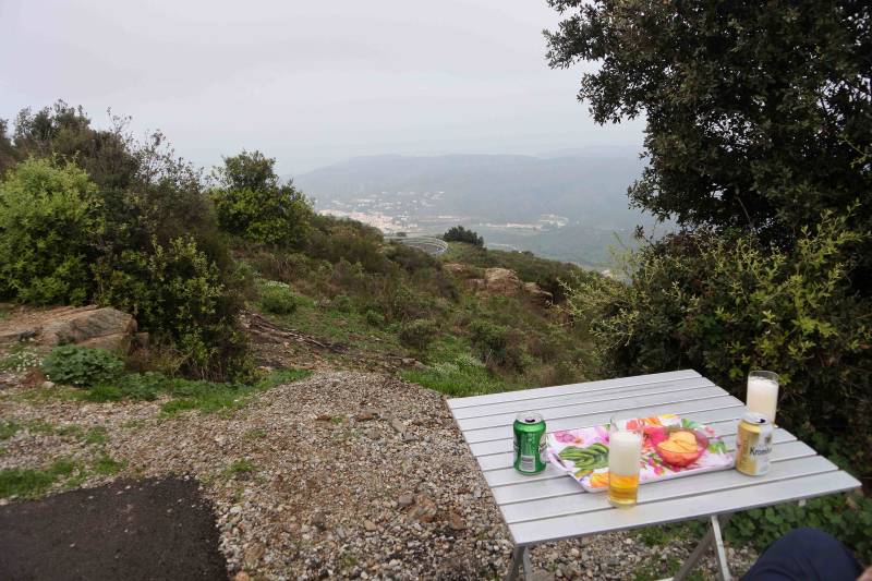 Aan alles komt een end, dus ook aan ons verblijf in Catalonië. Vanmorgen worden we wakker met nevel alom, maar deze maakt later plaats voor het zonnetje. Ook vandaag geen zuchtje wind en ook de temperatuur is nog verrassend hoog. Buiten de eitjes bakken voor het ontbijt kan dan ook met korte mouwen. Op weg naar huis willen we Les Orgues d’Ill-sur-Tet gaan bekijken, in de buurt van Perpignan. Op weg erheen nog even in Figueres diesel tanken en een volle gasfles aanschaffen, waarna we bij Le Perthus de grens met Frankrijk oversteken. Vandaar is het minder dan een uurtje rijden, zodat we rond één uur bij het bureau dat de toegangskaartjes verkoopt parkeren. Eerst even koffie drinken maar daarna volgt al snel een teleurstelling. Vanwege de grote hoeveelheden water van de afgelopen tijd is alles gesloten. Maar, tot troost, morgen zal het weer geopend zijn. Daar hebben we nu natuurlijk niets aan. We besluiten op de camping in het nabijgelegen Néfiach te overnachten, zodat we morgen nog een herkansing krijgen, voordat we verder naar het noorden trekken.