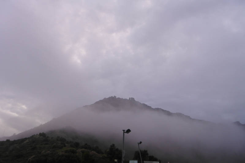 De dag begint met mist. Afscheid van het kasteel van Toroella boven op de berg dat we vanuit de hele regio als een baken konden zien