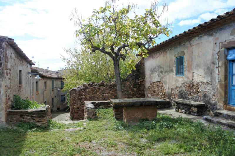 Op onze tweede fietsdag gaan we naar een meer heuvelachtig gebied zodat we de e-bikes goed kunnen testen. Ons hoofddoel voor vandaag is het plaatsje Púbol waar Dali indertijd een vervallen kasteel heeft gekocht en heeft laten restaureren voor zijn vrouw Gala. Maar, net als gisteren maken we er weer een rondrit van langs verschillende andere dorpjes. Het eerste dorp dat we aandoen is La Sala. Daarna volgen Foixá, Rupiá, Púbol, La Pera, Madremanya, Bordils en Flaça om weer langs Foixá en La Sala terug naar de camping te rijden. Even buiten La Sala komen we bij het oude kerkje van Santa Maria de Sala met slechts één woonhuis ernaast. Een oase van rust en met een grote moestuin ernaast een ideaal plekje om te wonen.