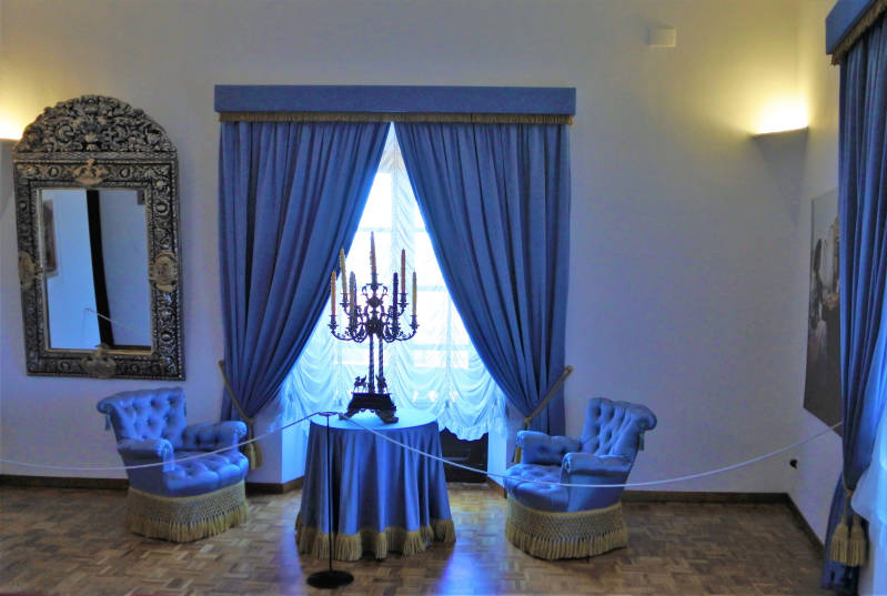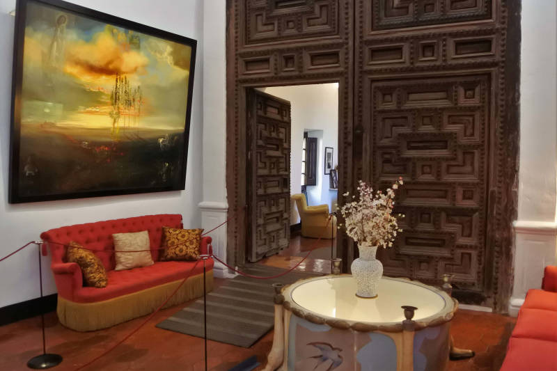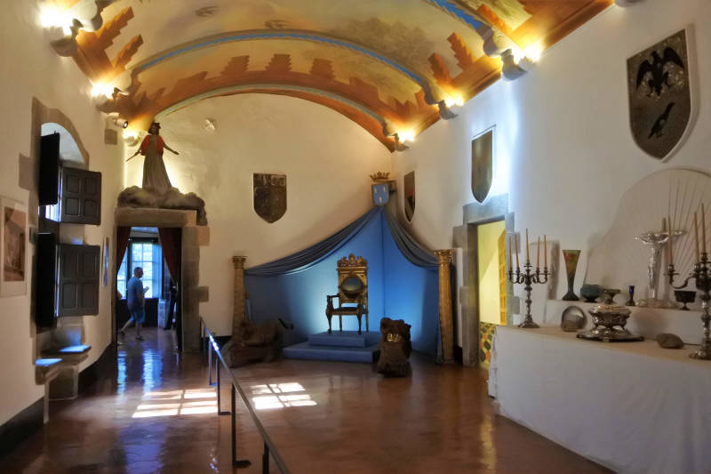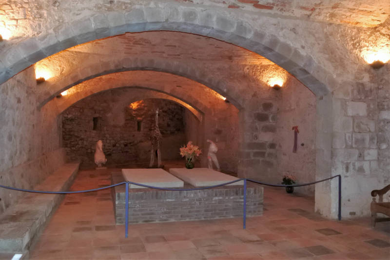 Het laatste stuk tussen Roses en Cadaquez is erg bochtig en smal en komt de snelheid niet boven de veertig kilometer per uur. Precies op tijd mag een groepje van tien mensen tegelijk binnen en onder de hoede van een gids worden we door de verschillende ruimten geleid. Behalve zijn boeken en schilderijen is alles nog aanwezig en in originele staat. Verrassend en boeiend om zo in de leefwereld van de excentrieke kunstenaar te kunnen stappen. De ruimtes zijn allemaal heel verschillend qua grootte, vorm en inrichting. Hij bouwde en verbouwde de woning stukje bij beetje en zei zelf: “Het is als een biologische structuur. Elke nieuwe impuls in ons leven heeft zijn eigen nieuwe cel…. een kamer”. Na het museumbezoek gaan we weer verder. Nu naar het voormalige klooster van Sant Pere de Rodes dat achttien kilometer verder in de bergen is gelegen. Opnieuw een bochtige smalle weg, maar vooral het laatste stuk ook met steile hellingen. We zetten de camper op de parkeerplaats een stukje vanaf het klooster en zijn van plan om hier boven op de berg de nacht door te brengen. Vóórdat dat zover is gaan we vanmiddag eerst nog naar het klooster omdat dit morgen gesloten is. Maar daar vertellen we morgen wel over.