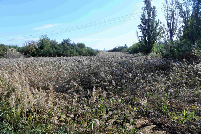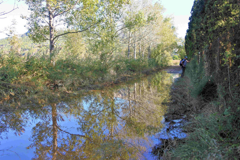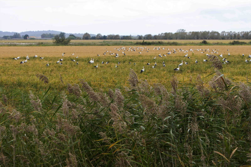 Vanochtend maken we ons klaar voor het vertrek vanaf de camping bij Pals. Nu is klaarmaken zo gepiept, want hebben we het meeste werk al gisteravond gedaan omdat er voor vannacht en vanmorgen regen was voorspeld. De regen is uitgebleven en ook vandaag schijnt het zonnetje weer. Naar de volgende camping is het maar twintig kilometer en dus is er tijd over om onderweg nog wat te ondernemen. Ten noorden van Pals bevinden zicht ongeveer 900 hectares aan rijstvelden. Nu hebben we een paar jaar terug bij Valencia al door de rijstvelden gefietst. Het was toen maart en de rijstvelden zagen er uit als een kale vlakte. Nu hebben we meer geluk. We parkeren de camper in het verlaten Platja de Pals en maken een rondwandeling in de omgeving. De rijst is bijna rijp om te worden geoogst. Het groeit als tarwe, alleen met veel dunnere aren en het gewas is maar ongeveer dertig centimeter hoog. We struinen langs de oever van een rivierarm op zoek naar flamingo’s, maar die blijken een ander reisplan te hebben dan wij. Na afloop rijden we, via Torroella de Montgri voor de boodschappen, naar een Cámping Rural even ten noorden van het dorpje Parlavá. Een nog nieuwe camping waar de begroeiing nog een paar jaar zijn gang moet gaan om beschutting voor de zon te kunnen bieden. Wij zijn de enige gasten en na de inschrijfprocedure die meer dan een kwartier in beslag neemt zoeken we een geschikt plekje.