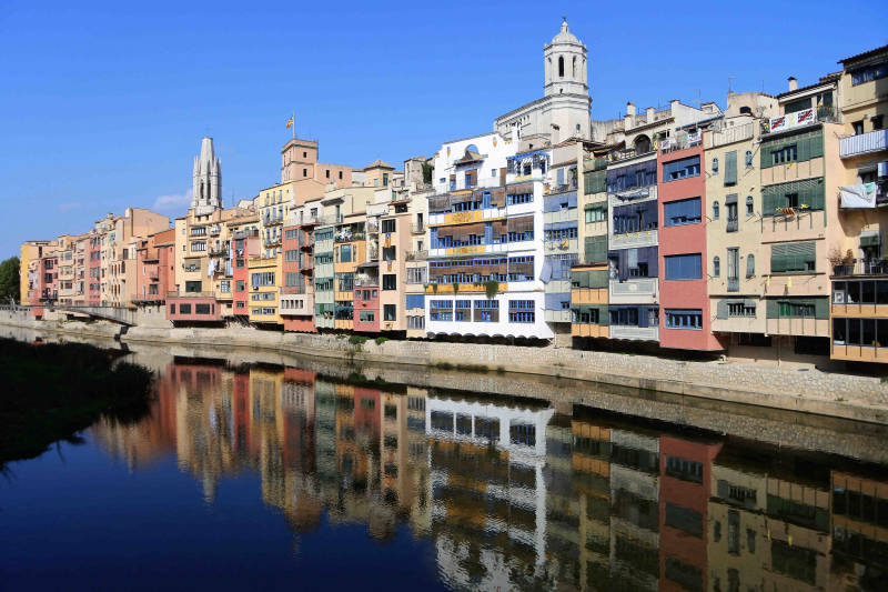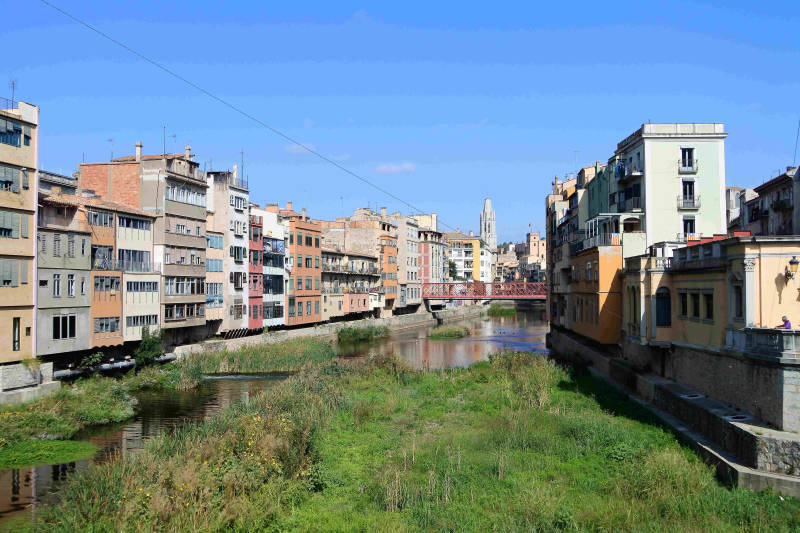 Gerona is een oude stad in een gebied dat al door de Iberiërs, dus nog vóór de Romeinen, werd bewoond. De huidige omvang is pas van recente datum en de stad was verworden tot een industrie stad met flinke vervuiling. De vervuiling is inmiddels aangepakt maar in de buitenwijken is aan de huizen de verpaupering nog goed af te zien. In het centrum is het gezellig druk met volop terrasjes. Het oudste deel van de stad is ommuurd en ligt op een heuvel met daarin de oude joodse wijk. Steile smalle straatjes die kris kras in elkaar overgaan bieden een pittoreske maar niet echte mooie aanblik. Dominant is de grote kathedraal die door de eeuwen heen in verschillende varianten is gebouwd. De huidige heeft een schip met overspanning van 23 meter en is daarmee na de Sint Pieter de grootste. Nadat we de kathedraal uitgebreid hebben bekeken, bezoeken we het Historish museum van Gerona en daarna vervolgen we onze rondwandeling door het oude gedeelte en langs de nog in tact zijnde vestingmuren. Op de weg terug schuiven we aan op een terrasje zodat er thuis niet hoeft te worden gekookt. De bus van zes uur, die slechts tien minuten te laat vertrekt, zet ons om zeven uur weer af in de buurt van onze camping.
