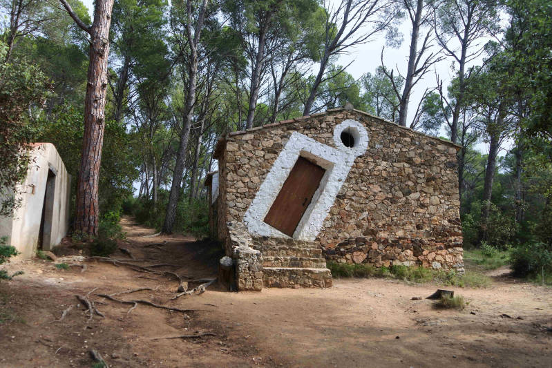 Verderop buigt het pad af naar het binnenland en even later stuiten we op het Baracca de Salvador Dali. Het blijkt een werkplaats die Dali ooit door een rijke vriend die in een nabijgelegen huis woonde kreeg aangeboden, maar waarvan Dali nooit gebruik heeft gemaakt. We vervolgen onze mooie en afwisselende wandeling, die door het bos slingert en waarbij we aan het eind weer bij onze camperplaats aankomen.