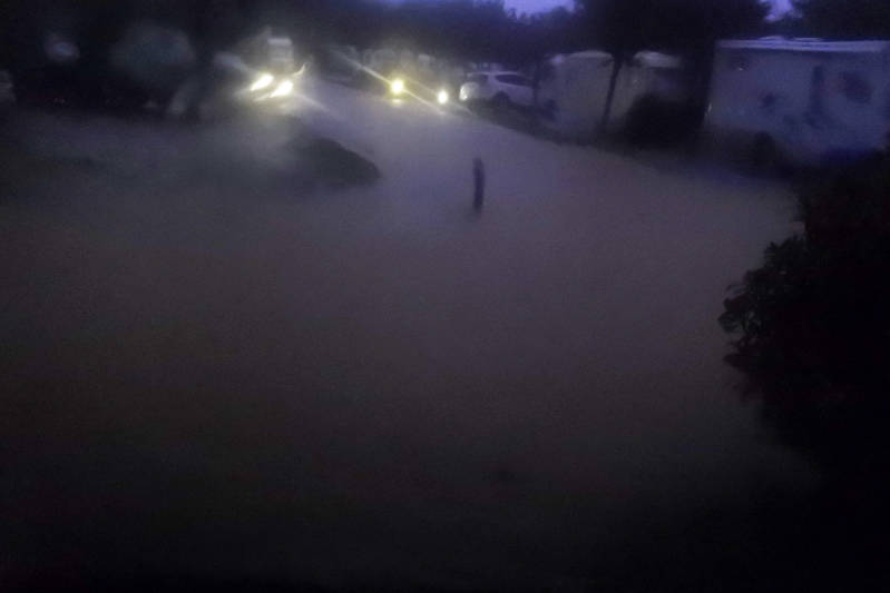 Afgelopen nacht heeft zich boven Catalonië een noodweer ontwikkeld dat aan ten minste een mens het leven heeft gekost. Daarnaast zijn er nog vier vermisten en is er veel schade. Meer dan twintig duizend mensen zitten zonder elektriciteit. Wij hebben er ook wat van meegekregen. Zo viel gisteravond ook bij ons de walstroom uit en was de camping in een grote plas veranderd waarbij onze camper gelukkig op een ‘eilandje’ hoog en droog bleef. Wij hebben natuurlijk zelf stroom in de camper en ook onze koelkast doet het prima op gas. Gedurende een paar uur bliksemde het zo kort op elkaar dat het een verlichte omgeving leek. De regen hield een flink deel van de dag aan, voor ons het sein om er een soort van ‘pyjama dag’ van te maken. In de namiddag werd het droog en we rekenen er op dat we vanaf morgen de draad van van ons vakantieprogramma weer kunnen oppakken.