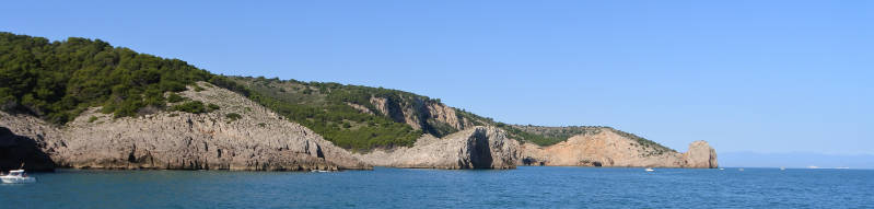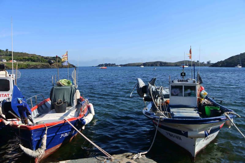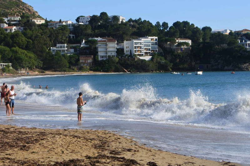 Wij volgen al kuierend de kustlijn tot voorbij de haven, waarna de Cami Ronda, het kustpad begint. Nu pas kunnen we goed zien hoe goed Roses wordt beschermd door de diepe baai. Het kustpad golft op en neer langs de rotsachtige kust, maar is in de loop der tijd met beton versterkt om het voor afkalven te behoeden. We volgen het pad tot aan Platja de Canyelles Grosses, waar we aan de rand van het strand onze lunchplek zoeken. Na de lunch gaat het in omgekeerde richting terug naar de camping waar we na ongeveer vijf uur wandelen weer moe maar voldaan naast de camper neerstrijken.